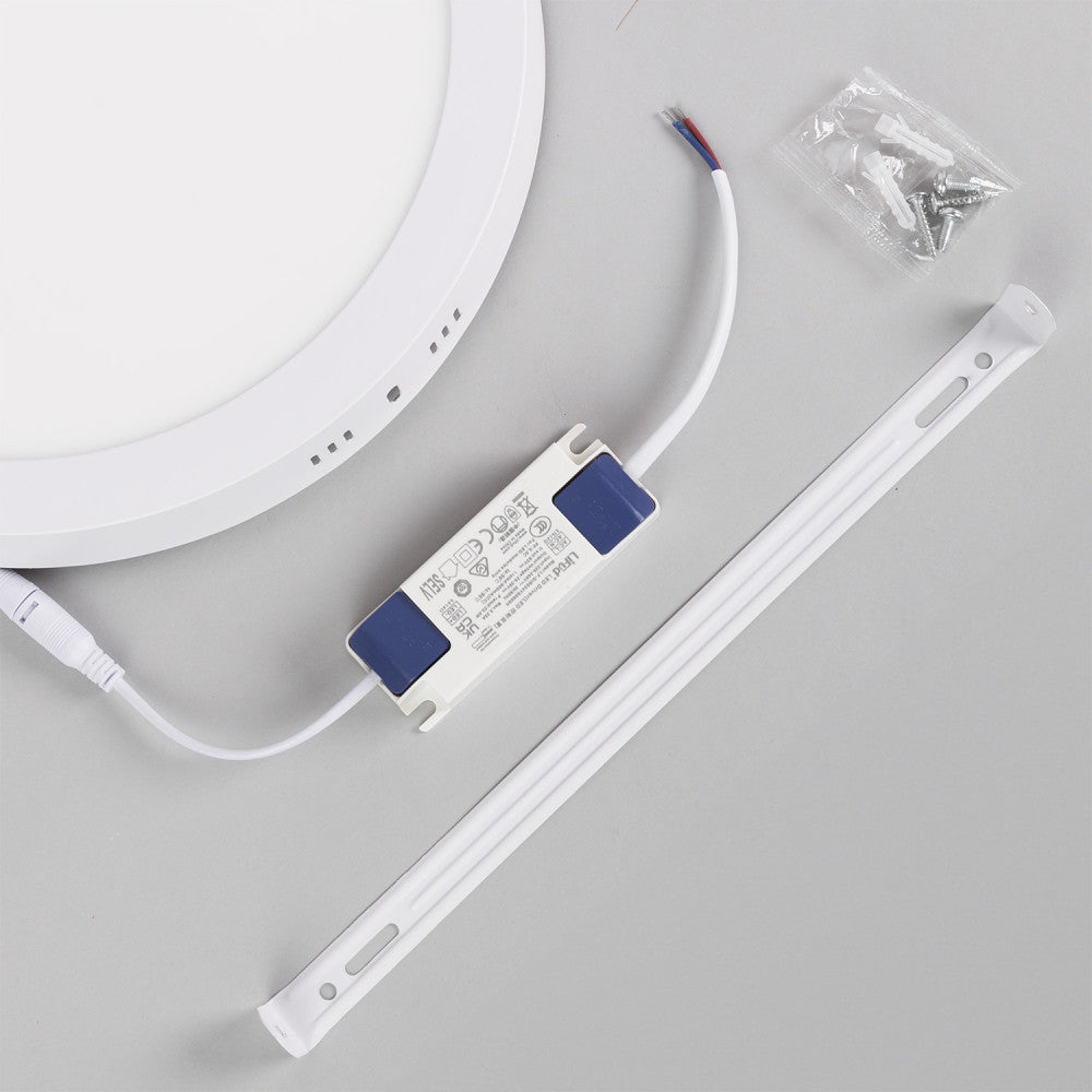 El plafón de techo de LEDs circular con driver LIFUD FLICKER FREE, ofrece soluciones para oficinas, fábricas, supermercados, tiendas y para uso residencial.Puede ser instalado directamente a las tomas de corriente suministradas por la red eléctrica (85-265VAC) con una frecuencia de servicio de 50/60Hz. Cuenta con una alta eficacia (100Lm/W) consumiendo 24W mediante LEDs del tipo SMD2835 y logrando proporcionar un flujo luminoso de 2400Lm distribuidos uniformemente por un difusor de plástico opalizado de donde se obtiene un índice de reproducción cromática de 80. Aporta una iluminación equivalente a una bombilla incandescente de 190W, su consumo representa un valor de 24kWh/1000h, reduciendo la cantidad de energía facturada y las emisiones de gases contaminantes a la atmósfera. Acabado en color blanco construido con aluminio.Este plafón de superficie tiene un grado de protección IP20 (válido para polvo y humedad en interiores), además de ser suficientemente robusto para las exigencias mecánicas requeridas. Ideal para sustituir a los tradicionales halógenas, llegando a ahorros de hasta el 90% y a downlight de bajo consumo convencionales, llegando a ahorros de hasta el 60% con lo que se consigue una alta eficiencia energética. Fácil instalación, larga vida de la luminaria led, más de 30.000 horas y libre de mantenimiento. La solución perfecta para crear un ambiente elegante, en obra nueva o rehabilitación, para sustituir los actuales focos, para el hogar, oficinas, recepciones, museos, bares, etc. Esta luminaria está disponible en blanco frío (6000°K) .La temperatura de color indicada puede sufrir oscilaciones correspondientes a una tolerancia del 7%.