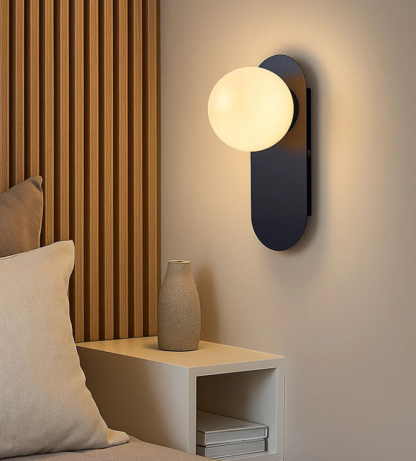 Características técnicas Modelo: Glow Tipo: Aplique de pared Difusor: Bola de cristal Instalación: Superficie en pared Uso: Interior Iluminación: Ambiental y decorativa Aplicaciones Salones Dormitorios Pasillos Hoteles Restaurantes Proyectos de interiorismo Ventajas Diseño moderno y elegante Difusión uniforme de la luz Ideal para iluminación ambiental Elemento decorativo para cualquier espacio Fácil instalación y gran versatilidad