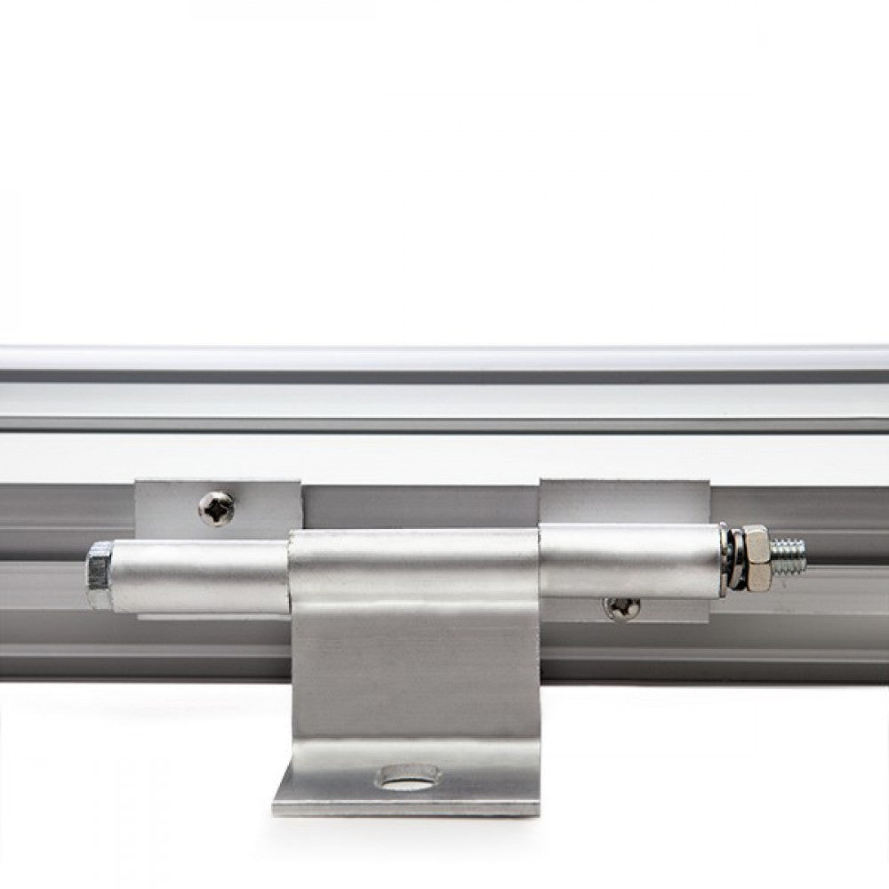 El Bañador de Pared de LEDs monta una óptica pensada especialmente para iluminación difusa. Su driver está integrado en el interior del Bañador Lineal. Funciona directamente a 100-240 V, por lo que se alimenta conectándolo directamente a la red eléctrica. Cuenta con una alta eficacia consumiendo 36 W mediante 36 LEDs de alta potencia, con un ángulo de apertura de 60°, obteniendo un índice de reproducción cromática de 80.