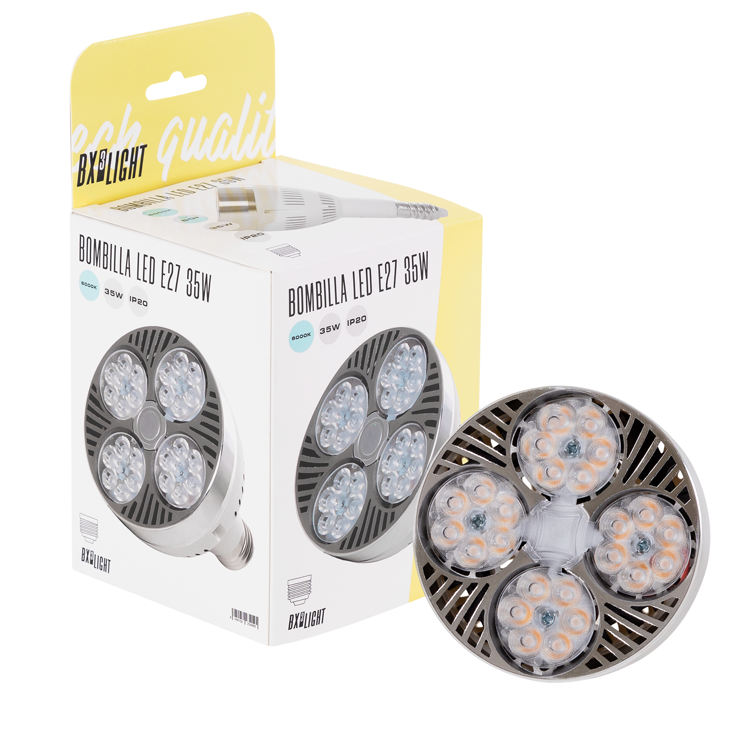 La Bombilla LED E27 35 W PAR30 BX3 LIGHT con ventilador es una solución de alto rendimiento diseñada para aplicaciones que requieren elevada potencia lumínica y disipación térmica activa. Gracias a su sistema de ventilación integrado, garantiza mayor estabilidad y prolonga la vida útil en usos intensivos. Especificaciones técnicas: Potencia nominal: 35 W Formato: PAR30 Casquillo: E27 Sistema de refrigeración: Ventilador integrado Tecnología LED: Alta eficiencia Encendido instantáneo Larga vida útil operativa Características principales: Alta potencia lumínica Mejor disipación térmica mediante ventilador activo Sustitución eficiente de lámparas halógenas PAR30 de alto consumo Iluminación focal potente y definida Ideal para comercios, escaparates, almacenes y aplicaciones profesionales Fabricada bajo los estándares de calidad de BX3 LIGHT, garantiza rendimiento estable, eficiencia energética y fiabilidad en aplicaciones de iluminación de alta exigencia.
