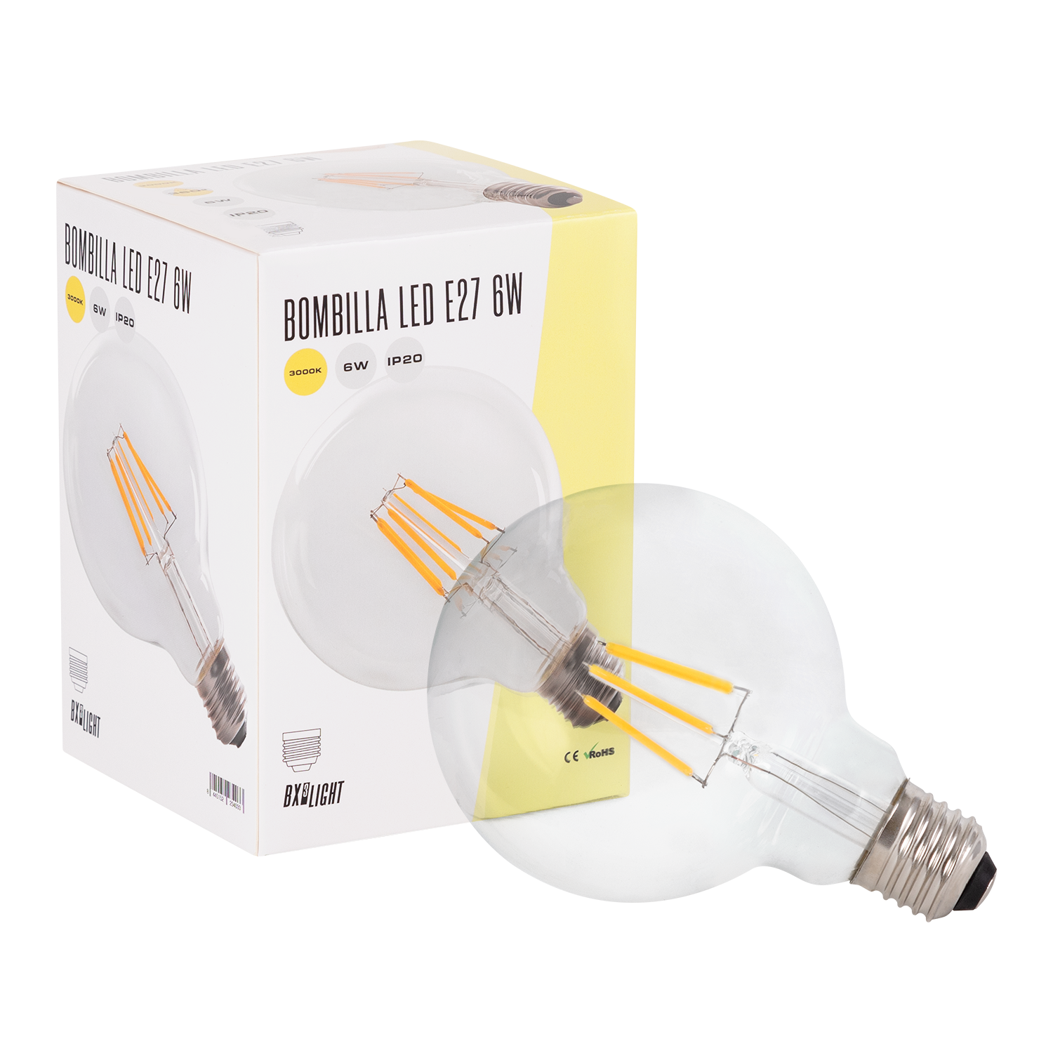 La Bombilla LED E27 6 W Filamento G95 BX3 LIGHT combina estética vintage con tecnología LED de alta eficiencia, proporcionando una luz extra cálida ideal para crear ambientes acogedores y decorativos. Especificaciones técnicas: Potencia nominal: 6 W Flujo luminoso: 432 lúmenes Temperatura de color: 2000ºK (extra cálido) Formato: G95 Tecnología: Filamento LED Casquillo: E27 Vida útil estimada: 40.000 horas Encendido instantáneo Características principales: Diseño decorativo tipo globo vintage Luz cálida ideal para ambientes relajados Bajo consumo energético Sustitución eficiente de bombillas incandescentes Perfecta para salones, restaurantes, hoteles y espacios decorativos Fabricada bajo los estándares de calidad de BX3 LIGHT, garantiza estabilidad lumínica, eficiencia energética y larga durabilidad en aplicaciones decorativas y residenciales.