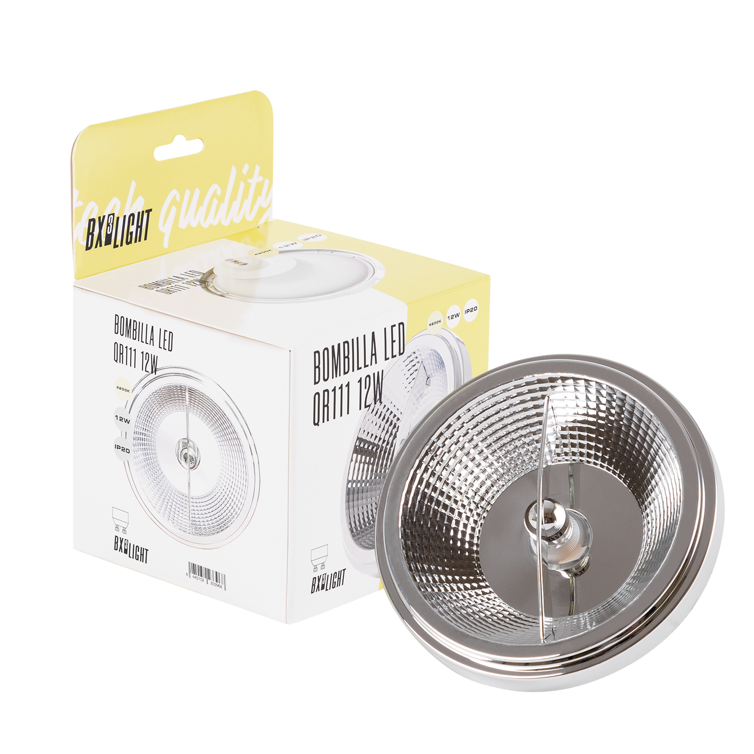 La Bombilla LED QR111 12 W BX3 LIGHT es una solución de iluminación profesional diseñada para aplicaciones de acento y exposición, ofreciendo alto rendimiento lumínico con bajo consumo energético y larga vida útil. Especificaciones técnicas: Potencia nominal: 12 W Flujo luminoso: 1.200 lúmenes Casquillo: GU10 Formato: QR111 Vida útil estimada: 40.000 horas Encendido instantáneo Tecnología LED de alta eficiencia Características principales: Iluminación focal potente y uniforme Sustitución eficiente de lámparas halógenas QR111 Bajo consumo energético Baja emisión térmica Ideal para tiendas, escaparates, galerías, restaurantes y espacios comerciales Fabricada bajo los estándares de calidad de BX3 LIGHT, garantiza estabilidad lumínica, eficiencia energética y larga durabilidad en aplicaciones de iluminación profesional.