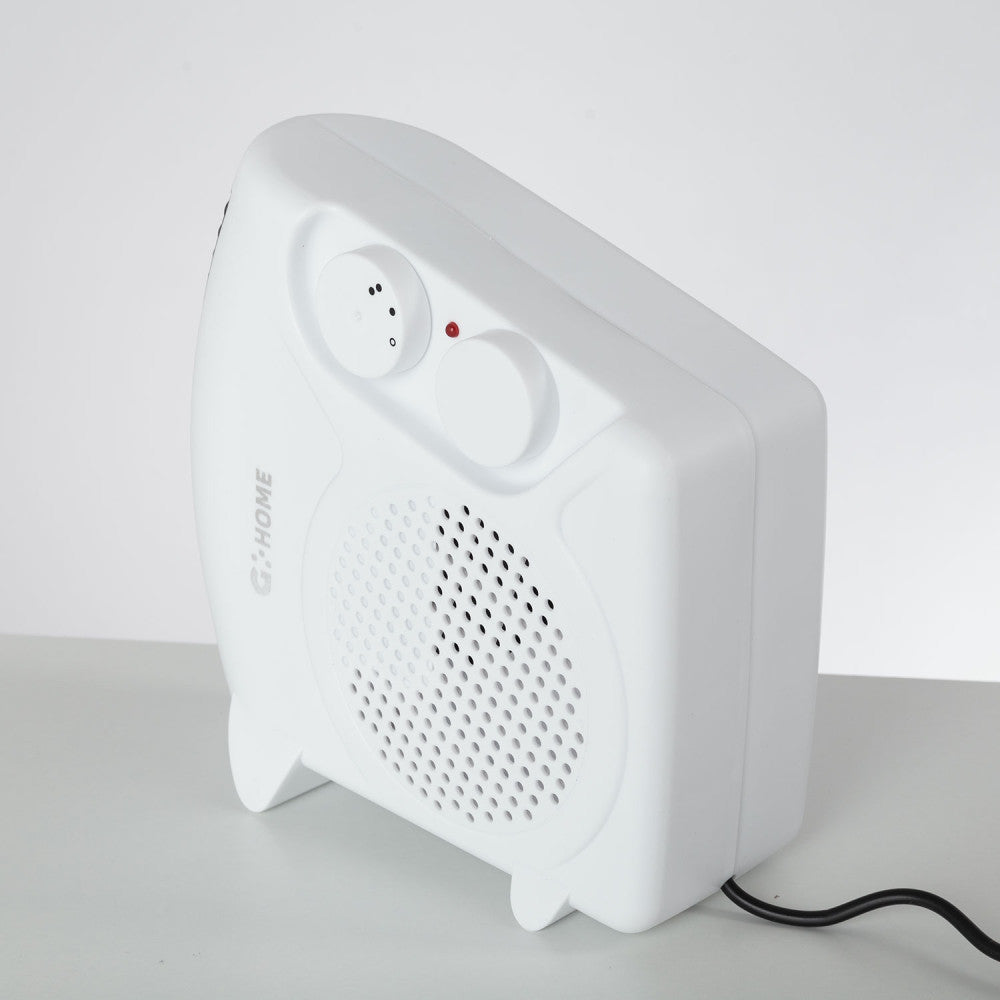 Calefactor Vertical/Horizontal Blanco 500W. Realizado en policarbonato. Equipado con 500 watios de potencia y termostato Regulable con tres funciones: ventilador, aire cálido y aire caliente, distribuyendo el aire caliente por toda la habitación gracias a su función ventilador, y con sistema de seguridad protección contra sobrecalentamiento y rejilla de protección. Viene también con una luz indicadora que informa si el calefactor está o no funcionando. Se presenta con un útil diseño que nos permite colocarlo tanto en vertical como en horizontal y es muy fácil de transportar gracias a su tamaño y al asa que contiene en su estructura compacta. Tiene unas dimensiones de 22,5×24,5×12 centímetros.