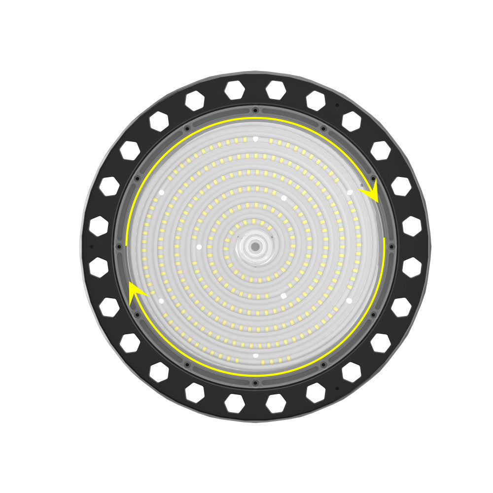 La Campana LED Lumileds 2835 Intensidad y Ángulo de Apertura Regulable Driver OEM permite obtener una gran potencia en un espacio muy reducido, gracias a los avances de última generación que incorpora. Opera en un rango de tensión de 100 a 277 V en corriente alterna, trabajando con un factor de potencia alto (0.95). Esta serie tiene una eficiencia del 93,5%, con un diseño sin ventilador, que puede operar en un rango de temperatura de carcasa de -40 a 65 grados Celsius, todo dentro de una carcasa metálica con un índice de protección IP65 e IK08. Esta campana es perfecta para todo tipo de espacios, tanto en interior como en exterior, incluso en las situaciones más desfavorables.
