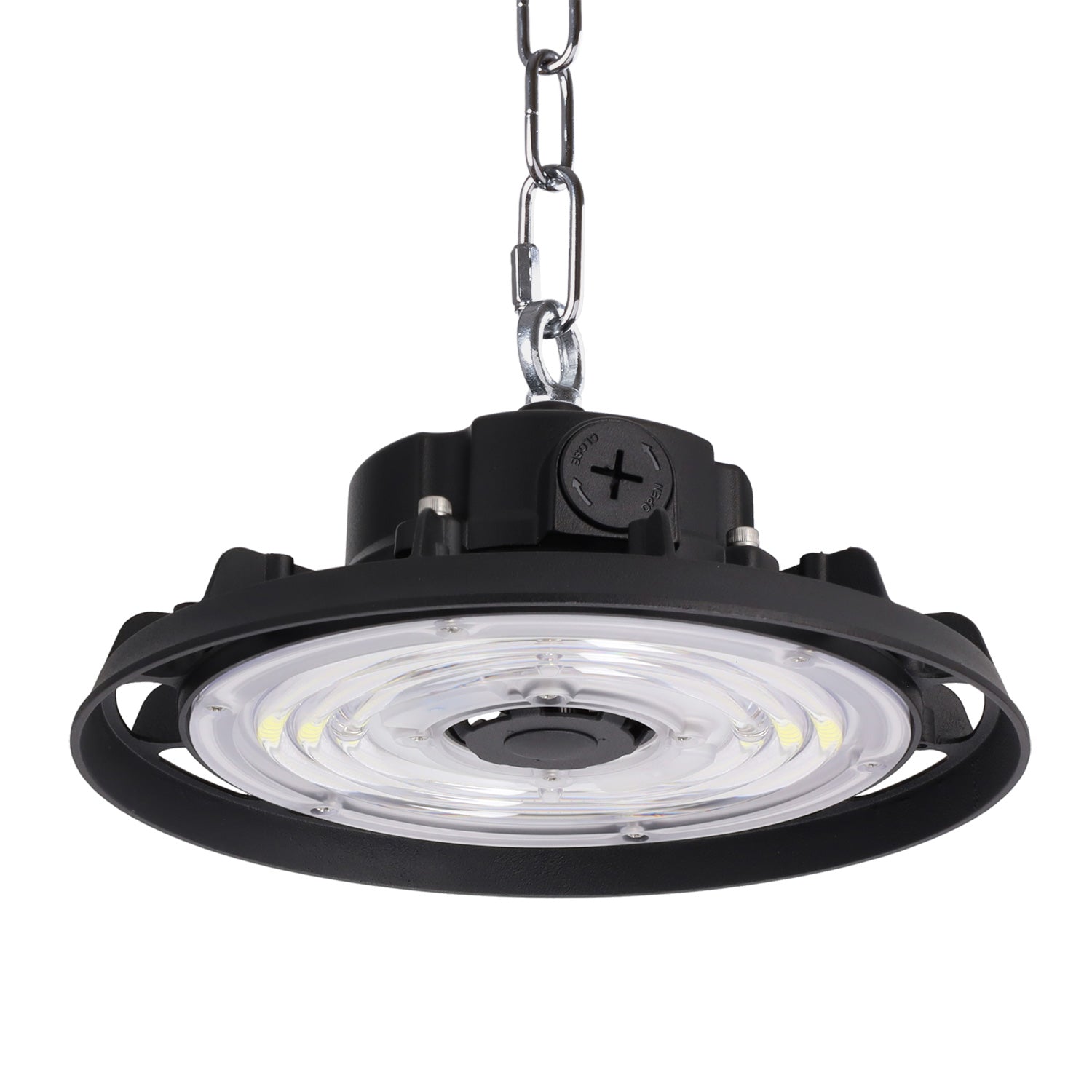 Además, cuenta con un driver LIFUD de alta calidad, que proporciona una alimentación constante y estable de energía a la lámpara. En conjunto, estas características hacen que la Campana UFO de 100 W sea una opción sólida y fiable para cualquier proyecto de iluminación, tanto interno como externo. Con su combinación de eficiencia, durabilidad y calidad de luz, esta lámpara es una inversión a largo plazo para su iluminación.