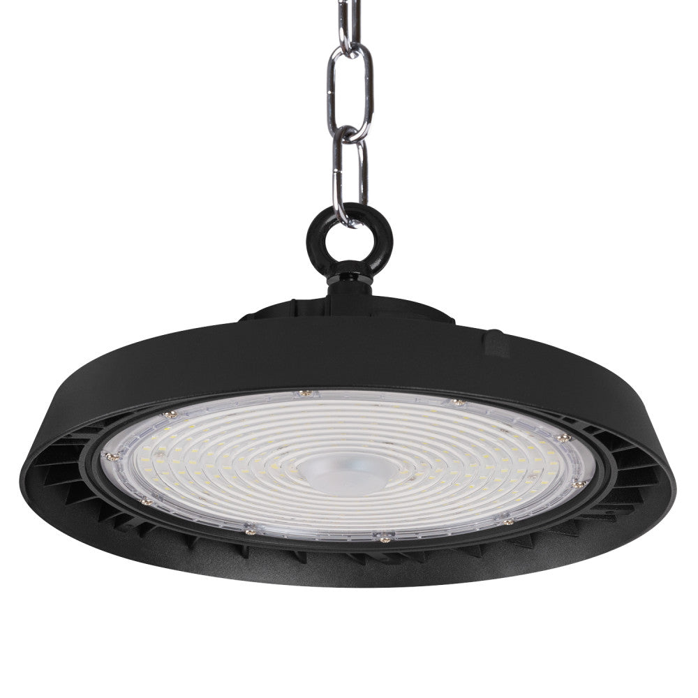 La UFO High Bay de 150 W con regulación 1-10 V es una solución de iluminación eficiente y versátil. Con una eficiencia luminosa de 180 lm/W, esta luminaria proporciona una cantidad impresionante de luz por cada vatio de energía consumida. Su diseño UFO es elegante y moderno, y ofrece una distribución uniforme de la luz, por lo que es perfecta para techos altos y espacios amplios. La regulación de 1-10 V le permite ajustar la intensidad de la luz con precisión, por lo que es ideal para diferentes aplicaciones y entornos.