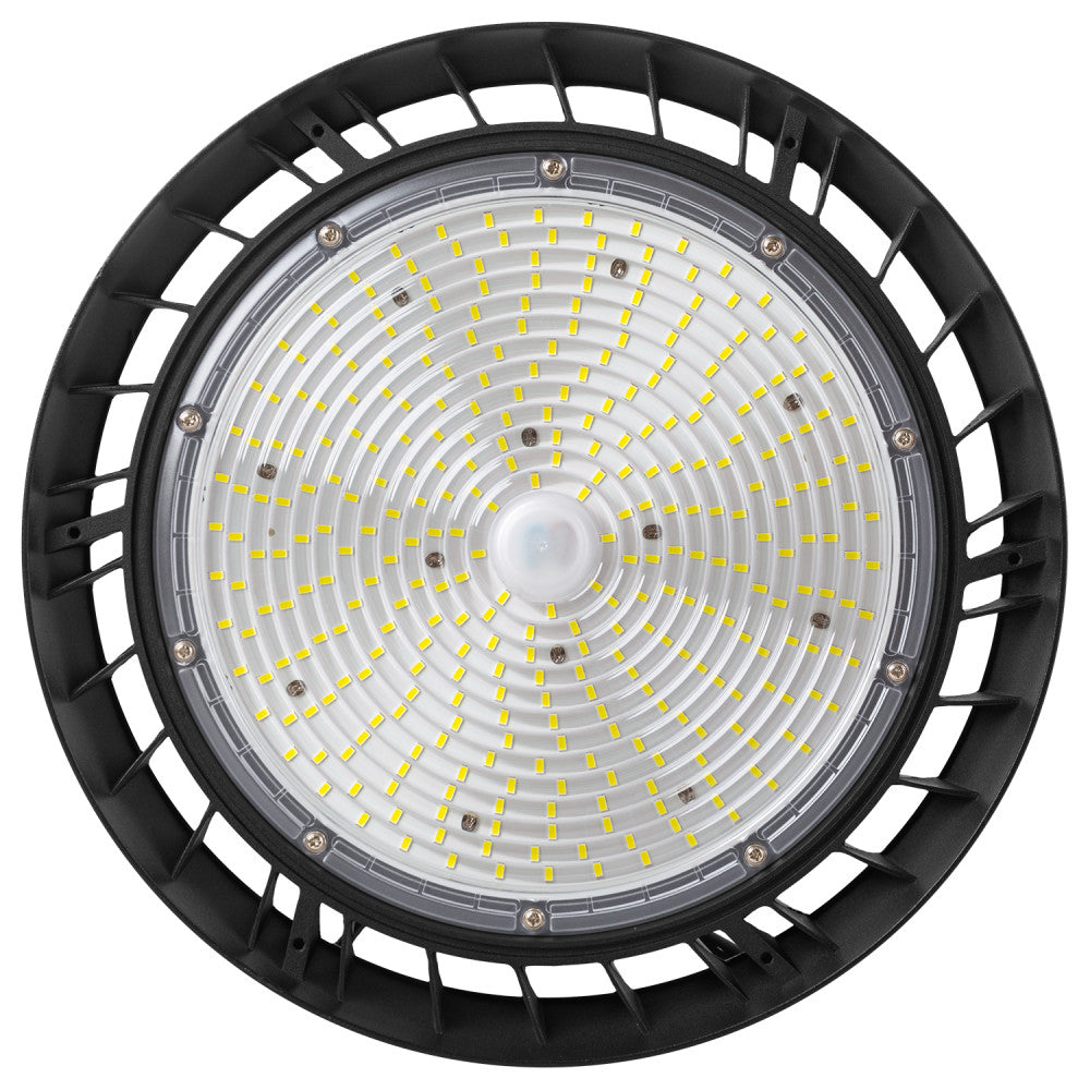 La Campana UFO de 200 W con regulación 1-10 V es una solución de iluminación eficiente y versátil. Con una eficiencia lumínica de 180 lm/W, esta lámpara proporciona una cantidad impresionante de luz por cada vatio de energía consumido. Su diseño UFO es elegante y moderno, y ofrece una distribución uniforme de la luz, lo que la hace perfecta para techos altos y grandes espacios. La regulación 1-10 V permite ajustar la intensidad de la luz con precisión, lo que la hace ideal para diferentes aplicaciones y entornos.