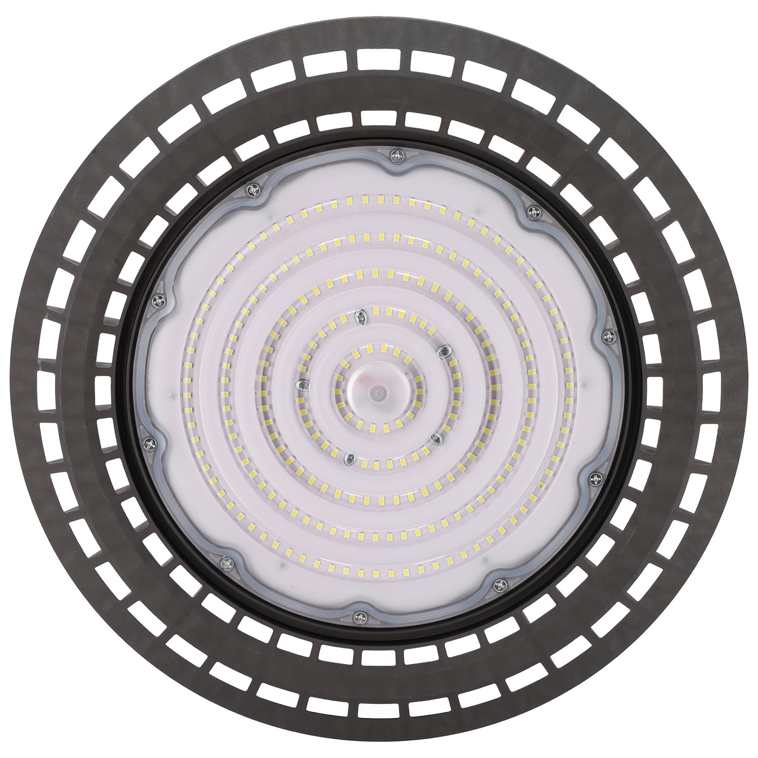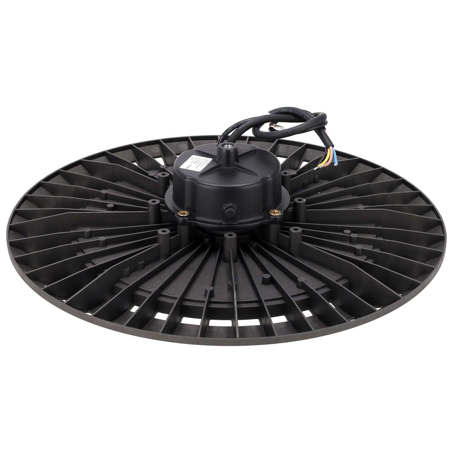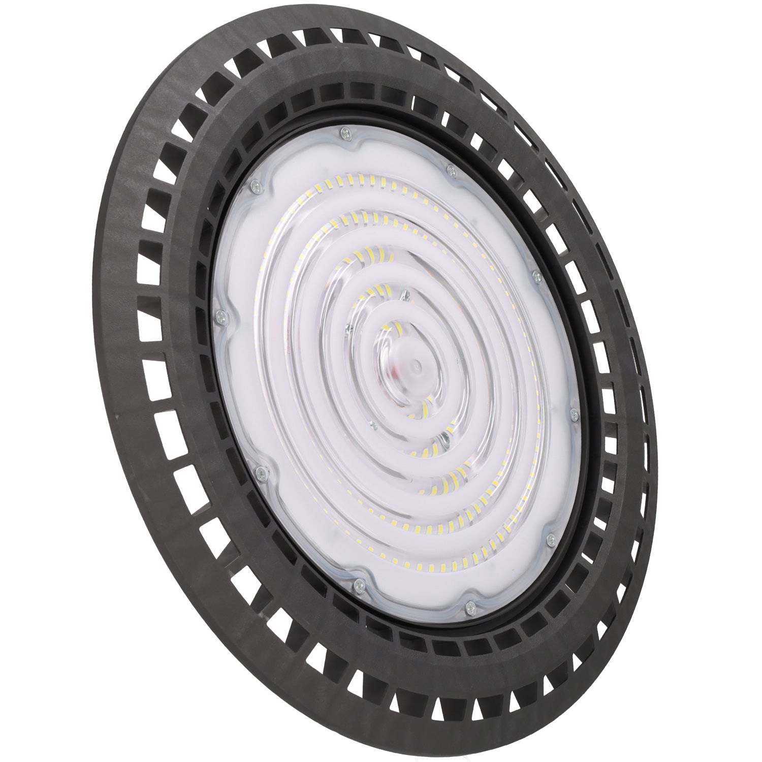 El LED high bay ofrece soluciones para ambientes exteriores e interiores tanto para uso industrial como residencial. Puede instalarse directamente en tomas alimentadas por la red eléctrica (120-277 VAC) con una frecuencia de servicio de 50/60 Hz. Tiene una alta eficacia de 170 Lm/W distribuidos uniformemente a través de un difusor de plástico transparente del que se obtiene un índice de reproducción cromática de 80. La campana tiene un grado de protección IP65 (válido para polvo y humedad en exteriores), además de ser lo suficientemente robusta para las exigencias mecánicas requeridas. Esta campana está disponible en blanco frío (6000°K).