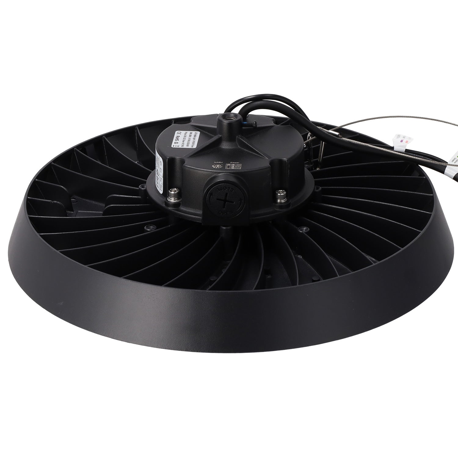 Incorpora LEDs de alta eficiencia con chip Philips Lumileds SMD, garantizando consistencia fotométrica y larga durabilidad (L80 > 50.000 h). La temperatura de color de 6000K (luz fría) mejora la visibilidad en entornos técnicos o industriales, reduciendo la fatiga visual. Especificaciones Técnicas: Potencia nominal: 200 W Flujo luminoso: 40.000 lúmenes Eficiencia luminosa: 200 lm/W Temperatura de color (CCT): 6000K (luz fría – blanco día) Índice de reproducción cromática (CRI): >80 Driver: PHILIPS Xitanium – regulable 1-10 V (flicker-free) Óptica: Haz simétrico de 90º Protección: IP65 – IK9 Rango de temperatura de operación: -30ºC a +50ºC Cuerpo: Aluminio inyectado con acabado negro anodizado Montaje: Suspensión mediante gancho / opcional adaptador para campana Vida útil: L80 > 100.000 h Factor de potencia (PF): >0.99 THD: <15% Aplicaciones recomendadas: Naves industriales y logísticas Centros de distribución Talleres, plantas de producción Superficies deportivas cubiertas Zonas con requerimientos de alto rendimiento lumínico