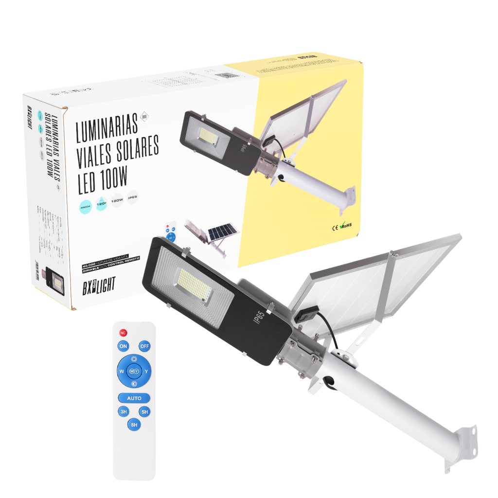 Luminarias Viales Solar – Alumbrado Publico – Farolas Led – Entornos Urbanos y Residenciales 100W IP65 6000 k [BX3-FAR-SOL-]