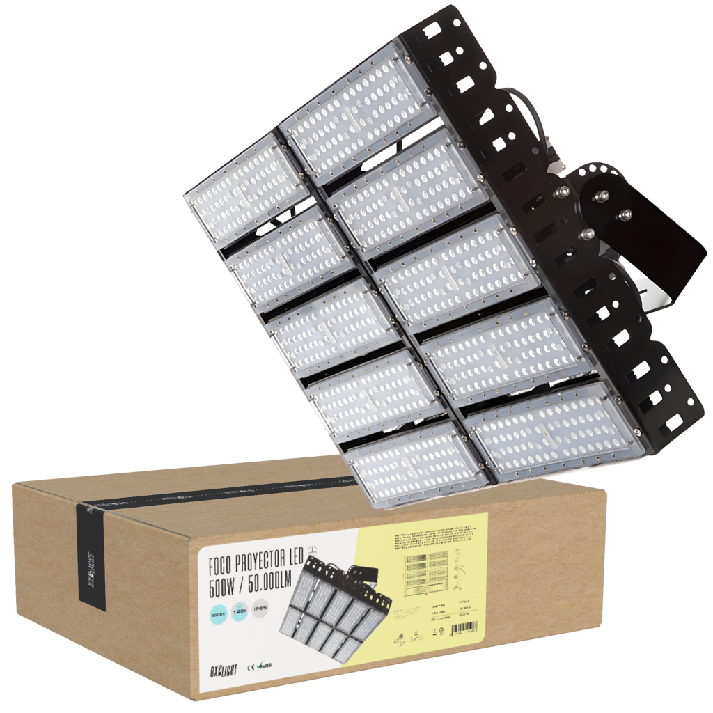 Foco Proyector LED 500W Stadium 75000Lm Driver Meanwell 1-10V IP65 Philips 3030 60º 100.000H