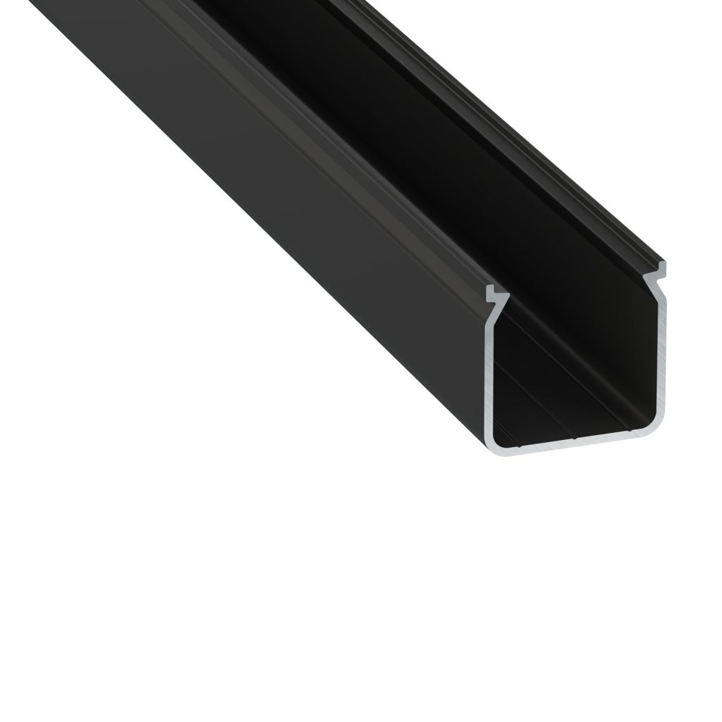 Perfíl Aluminio KIMERA-BARDE Anodizado Negro con Difusor Opal y Tapones 2,02M