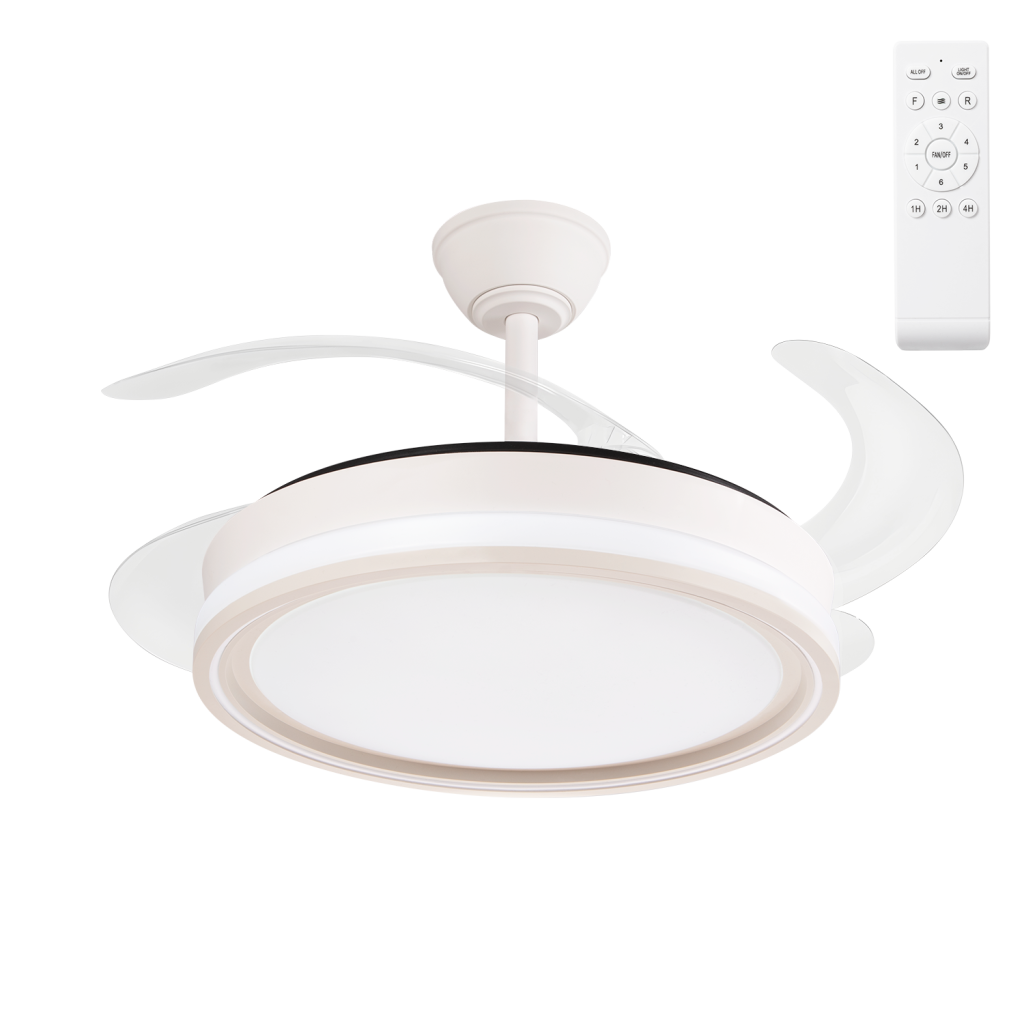 Ventilador Dc Bandido Función Verano-Invierno 59w Blanco 4 Aspas 107d 5900lm 3500-4000-6500k Remoto y Temporizador