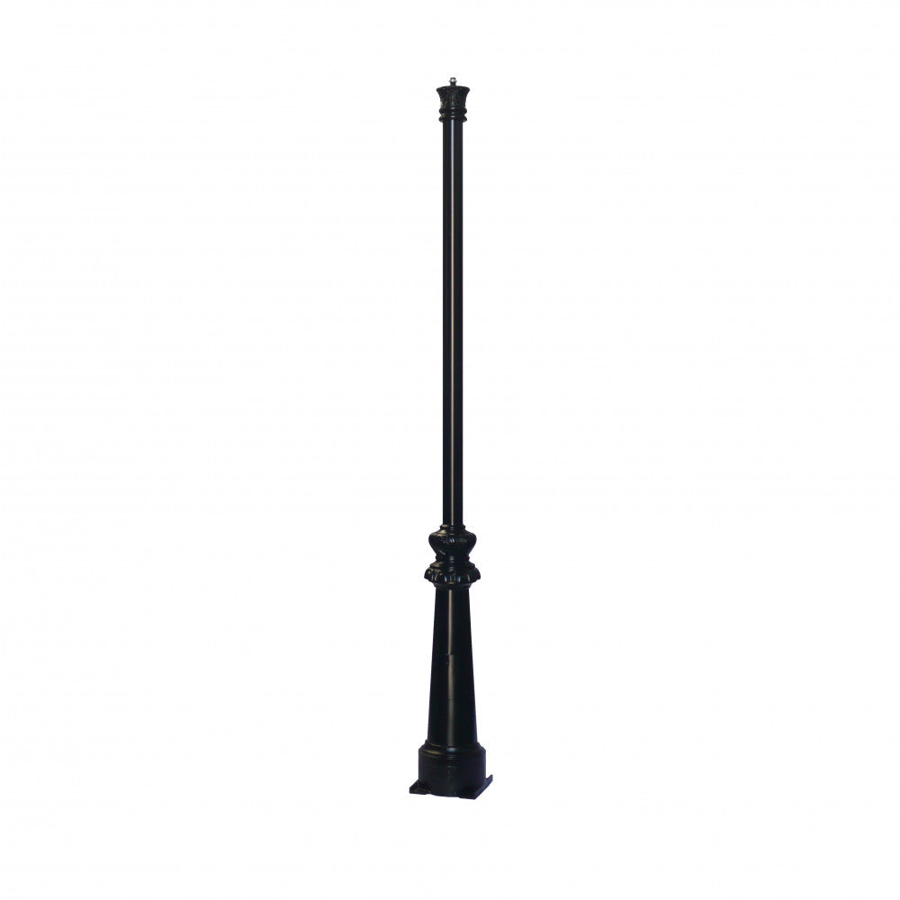 Fabricada en chapa y tubo de acero con motivos en fundición de hierro. Terminada con imprimación y pintura esmalte de color negro. Altura:3,2metros.