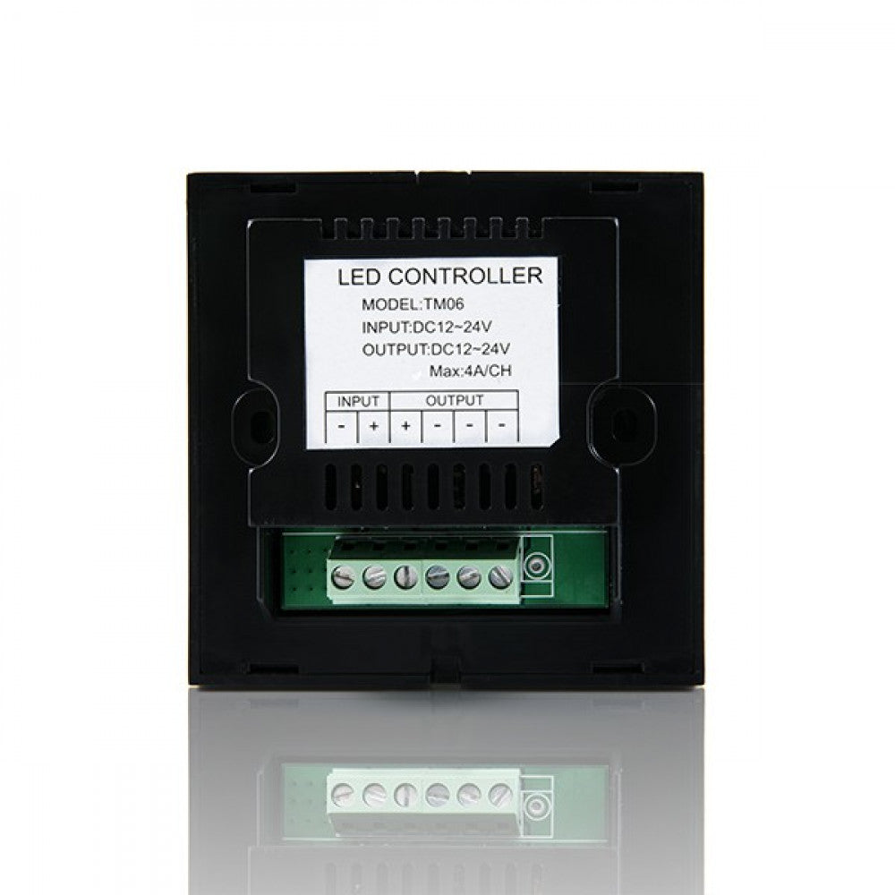 El Controlador Empotrable Táctil permite la graduación progresiva de temepratura de color blanco del LED mediante tecnología táctil. Con una elegante rueda de variación de color y un panel táctil completo para una fácil instalación y control. El controlador permite gobernar tanto la velocidad como la intensidad de la temperatura de color y el cambio de modo con inflexión de luz tenue sobre el encendido/apagado en la larga distancia de control que goza de una alta sensibilidad y fuerta capacidad de tracción a un rendimiento constante y fiable. Este controlador se puede emparejar con todo tipo de luces ajustables unicolor, tales como la tira flexible de LED, paneles LED, downlight LED, módulos LED, etc.