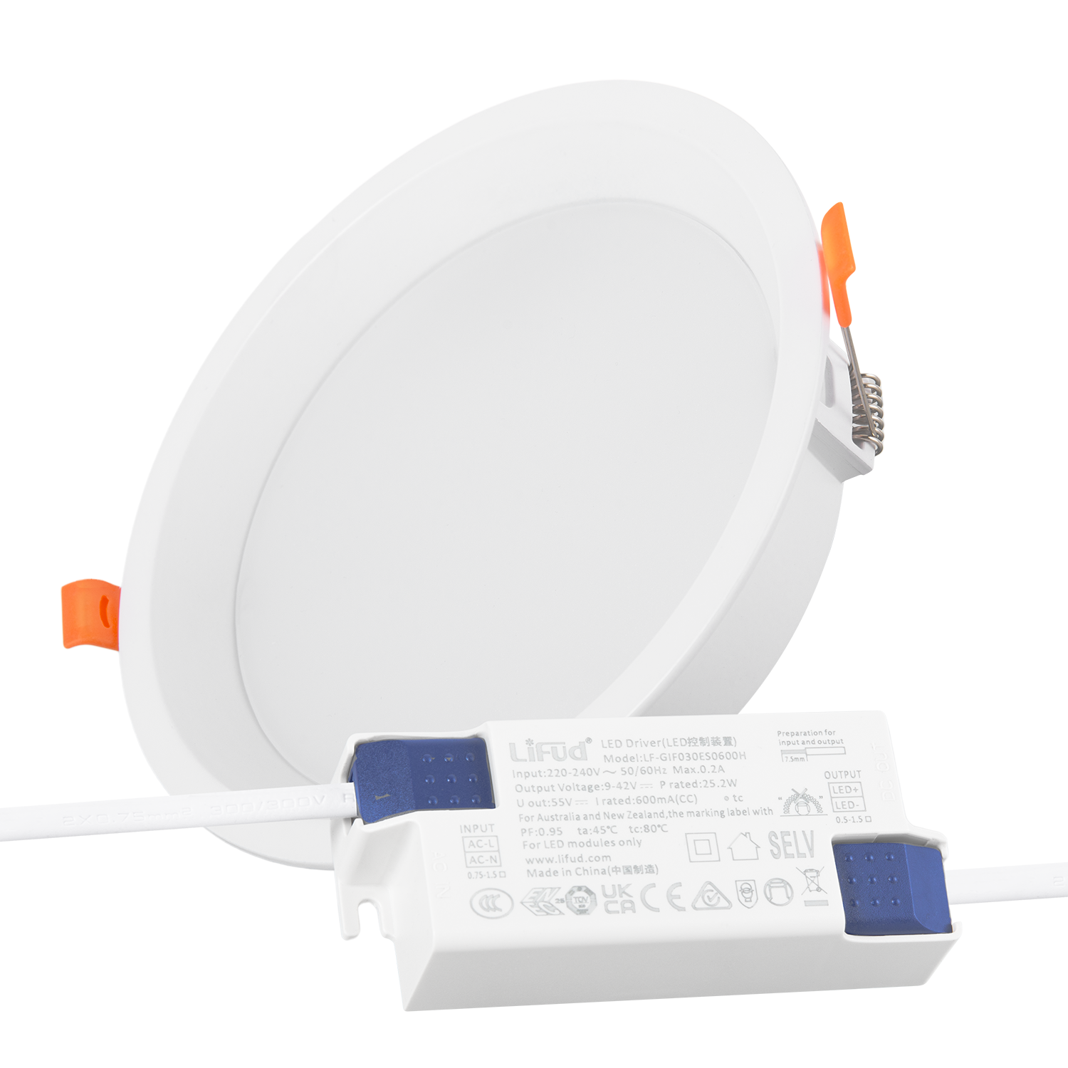 El Downlight Philips LED Driver Lifud Flicker presenta un diseño moderno y compacto. Incorpora una fuente lumínica de la marca LUMILEDS con tecnología SMD3030 que aportan un rendimiento de 140 LmW. Emite una luz de gran calidad, como indica su alto índice de reproducción cromática evitando que se distorsionen los colores, en un ancho de haz de 120º.