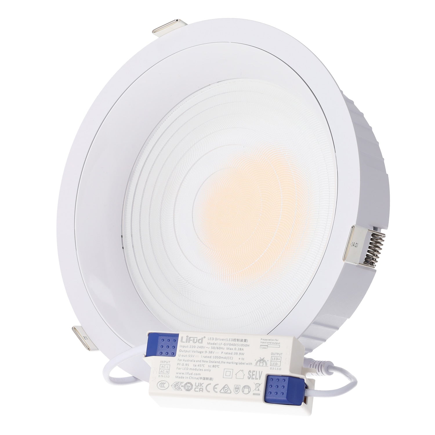 Este Downlight LED 4 CCT LIFUD Flicker Free 140LmW es la solución perfecta para iluminar espacios comerciales y profesionales. Su diseño basculante permite direccionar la luz con precisión, ideal para destacar productos en vitrinas, mostradores o escaparates. Iluminación de alta calidad: Cuenta con chips LED SMD2835 Bridgelux LED que presentan un alto índice de reproducción cromática (CRI>90), garantizando una reproducción fiel de los colores. Driver LIFUD incluido: Equipado con un driver LIFUD de alta calidad, que asegura un rendimiento estable y eficiente.