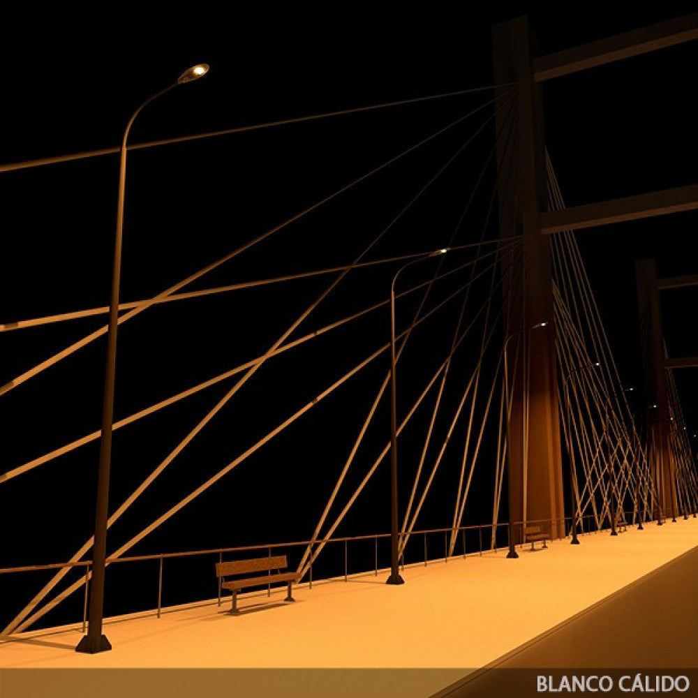 La Farola de LEDs para alumbrado público de 495x215mm, y un espesor de 80 mm está destinada al alumbrado público y vial como sustituta natural para las antiguas farolas de descarga, mejorando la calidad de la luz y reduciendo notablemente su consumo energético gracias a la tecnología LED. Puede ser instalada directamente a las tomas de corriente suministradas por la red eléctrica (100-240 VAC) con una frecuencia de servicio de 50/60 Hz Cuenta con una alta eficacia (86 LmW) consumiendo 50 W mediante un LED del tipo COB, logrando proporcionar un flujo luminoso de 4320 Lm distribuidos uniformemente por medio de un difusor transparente con un ángulo de apertura de 180°, obteniendo un índice de reproducción cromática de 90. Su consumo representa un valor de 50kWh1000h, reduciendo la cantidad de energía facturada y las emisiones de gases contaminantes a la atmósfera. Esta farola ofrece un encendido instantáneo, tiene un grado de protección IP65 (válido para polvo y humedad en exteriores), además de ser suficientemente robusta para las exigencias mecánicas requeridas.