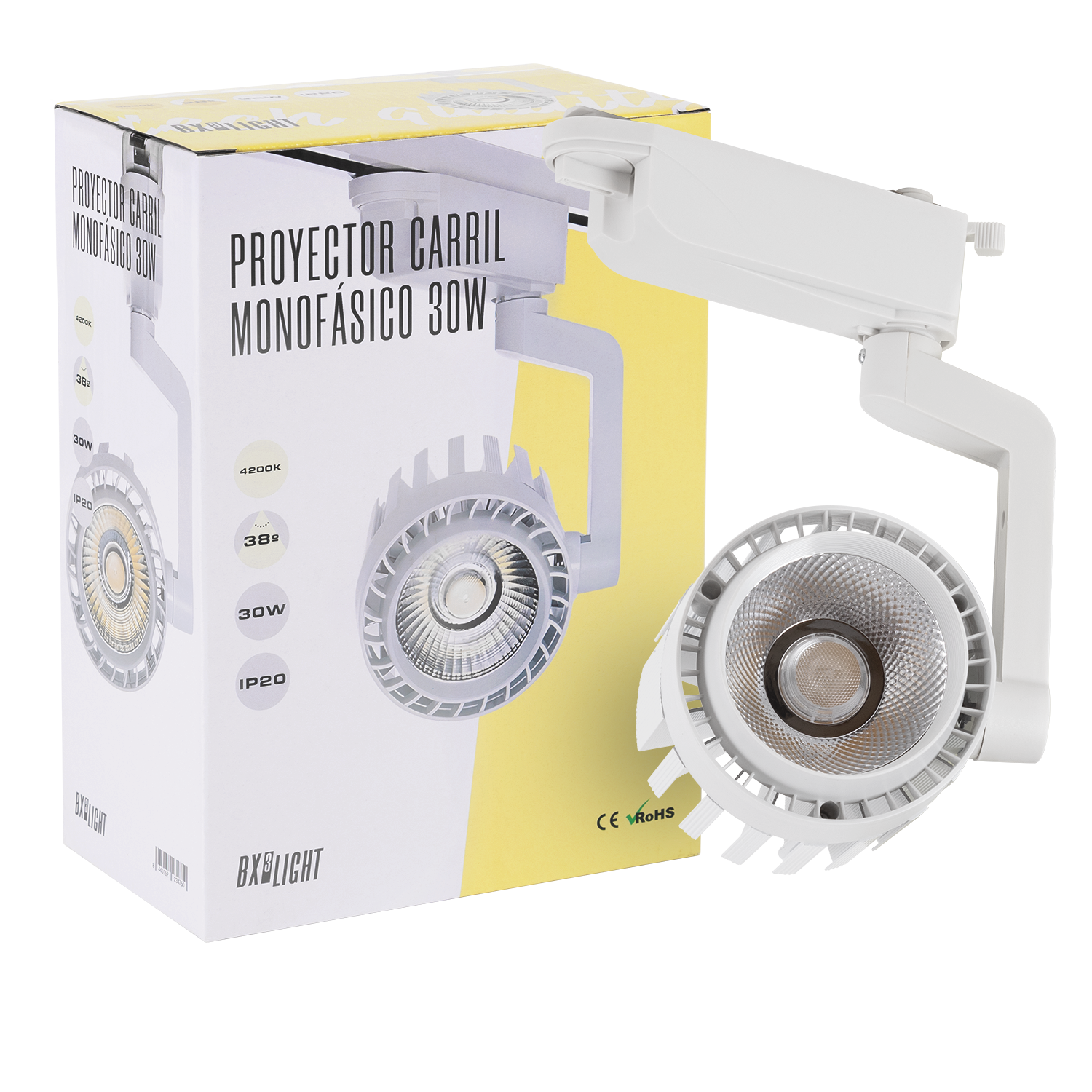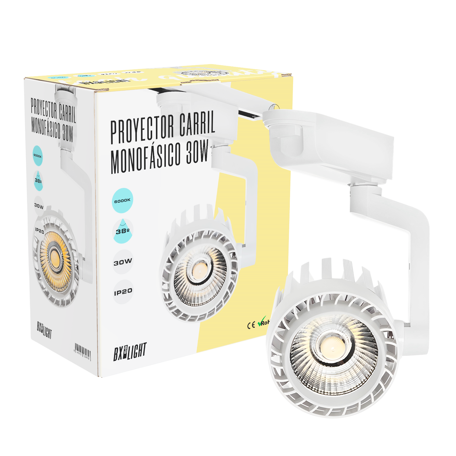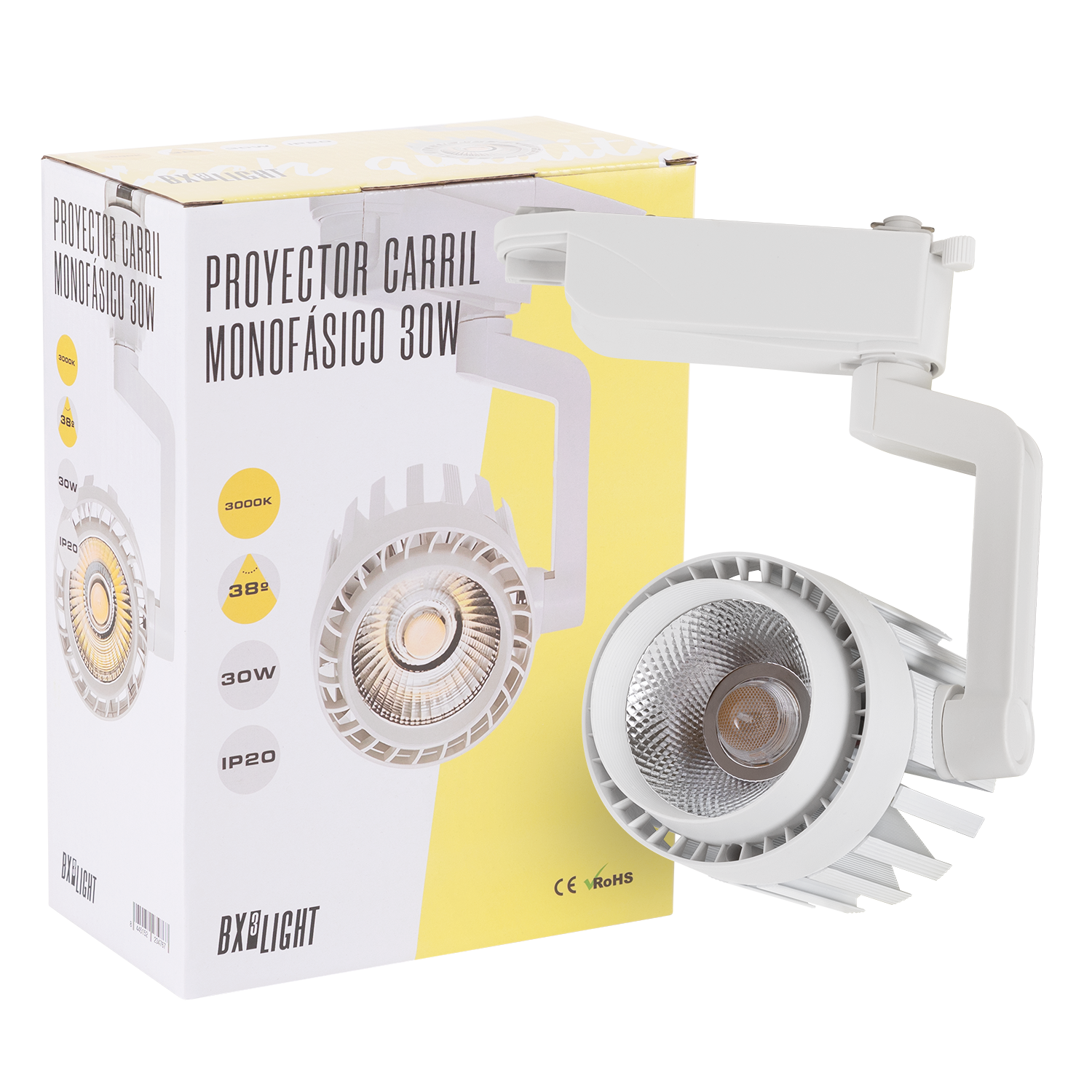 El Foco de Carril LED 30 W “Faith” BX3 LIGHT Monofásico es una luminaria profesional diseñada para iluminación comercial y de acento, proporcionando un alto rendimiento lumínico y gran versatilidad en espacios expositivos. Especificaciones técnicas: Potencia nominal: 30 W Flujo luminoso: 2.600 lúmenes Sistema de carril: Monofásico Tecnología LED: Alta eficiencia Encendido instantáneo Vida útil estimada: Hasta 40.000 horas Diseño orientable para iluminación focal Características principales: Iluminación direccional para resaltar productos Bajo consumo energético Instalación rápida en carril monofásico Diseño moderno y profesional Ideal para tiendas, escaparates, galerías y espacios comerciales Fabricado bajo los estándares de calidad de BX3 LIGHT, garantiza estabilidad lumínica, eficiencia energética y fiabilidad en proyectos de iluminación técnica.