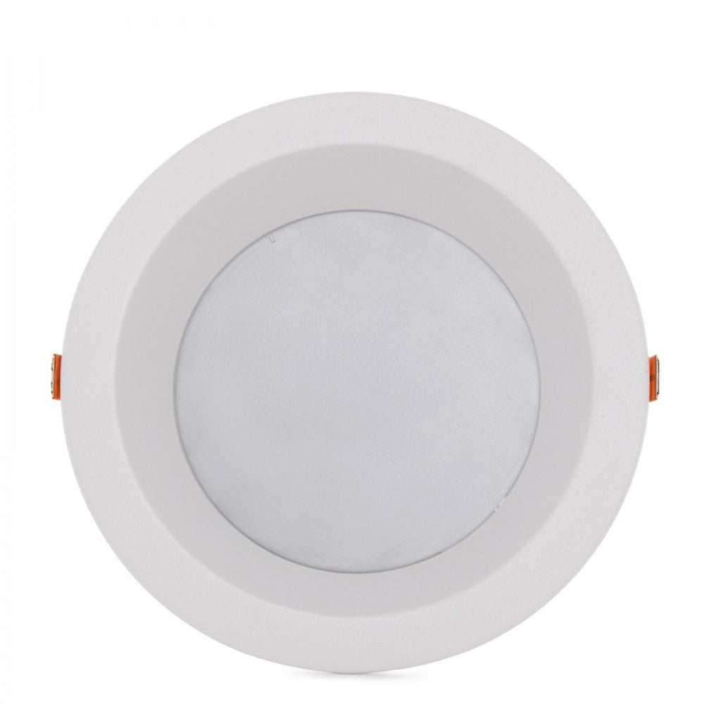 El Downlight de LEDs circular de 230 mm de diámetro con un espesor de (105 mm) , ofrece soluciones para oficinas, fábricas, supermercados, tiendas y para uso residencial. Puede ser instalado directamente a las tomas de corriente suministradas por la red eléctrica (65-265 VAC) con una frecuencia de servicio de 50/60 Hz Cuenta con una alta eficacia (100 LmW) consumiendo 24 W mediante un LED del tipo SMD2835 y logrando proporcionar un flujo luminoso de 2400 Lm distribuidos uniformemente por un difusor opal anti deslumbrante de donde se obtiene un índice de reproducción cromática de 80. Aporta una iluminación equivalente a una bombilla incandescente de 200 W, su consumo representa un valor de 24kWh1000h, reduciendo la cantidad de energía facturada y las emisiones de gases contaminantes a la atmósfera. Este downlight está alimentado con un driver no dimable incluido en el paquete que debe ser conectado directamente a la red, con un conector de salida compatible con la conexión del downlight (45-90 VDC, 300 mA), adicionalmente se incluyen los accesorios necesarios para la instalación del downlight.