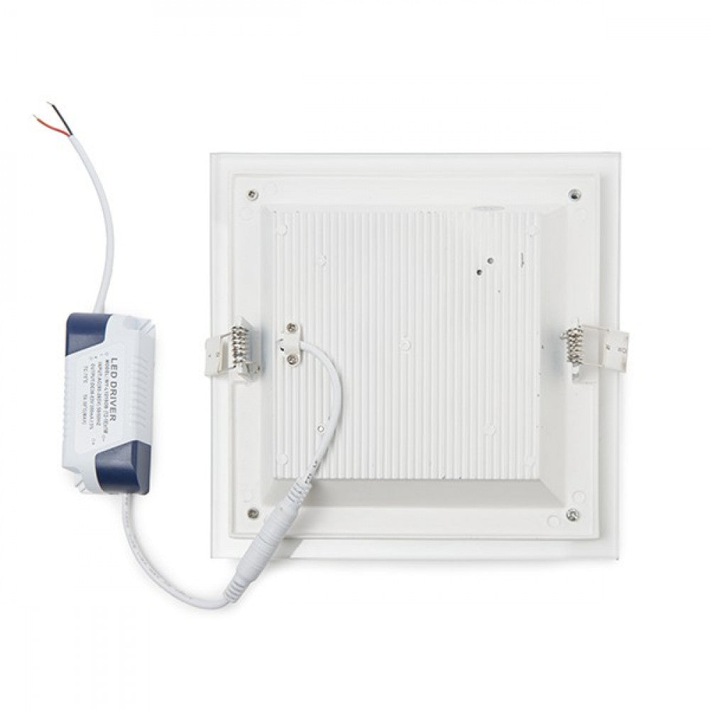 La placa de LEDs cuadrada de 200x200mm, con dimensiones ultrafinas (25 mm), ofrece soluciones para oficinas, fábricas, supermercados, tiendas y para uso residencial. Puede ser instalada directamente a las tomas de corriente suministradas por la red eléctrica (85-265 VAC) con una frecuencia de servicio de 50/60 Hz Cuenta con una alta eficacia (77 LmW) consumiendo 15 W mediante LEDs del tipo SMD2835 y logrando proporcionar un flujo luminoso de 1150 Lm distribuidos uniformemente por un difusor de plástico opalizado de donde se obtiene un índice de reproducción cromática de 80. Aporta una iluminación equivalente a una bombilla incandescente de 90 W, su consumo representa un valor de 15kWh1000h, reduciendo la cantidad de energía facturada y las emisiones de gases contaminantes a la atmósfera. Esta placa está alimentada con un driver no dimable incluido en el paquete que debe ser conectado directamente a la red, con un conector de salida compatible con la conexión de la placa (36-63 VDC, 300 mA), adicionalmente se incluyen los accesorios necesarios para la instalación de la placa.