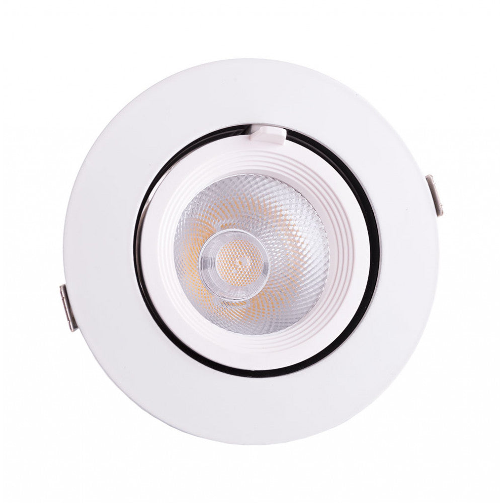 Downlight Orientable con tecnología LED es ideal para sustituir cualquier modelo de Downlight orientable existente en el mercado. Proporciona una luz intensa con multitud de posibilidades, ideal para sustituir a los tradicionales halógenas, llegando a ahorros de hasta el 90% y a downlight de bajo consumo convencionales, llegando a ahorros de hasta el 60% con lo que se consigue una alta eficiencia energética. ÁREAS DE APLICACIÓN Iluminación interior Especial para grandes alturas Escaparates y salas de exposiciones Comercios
