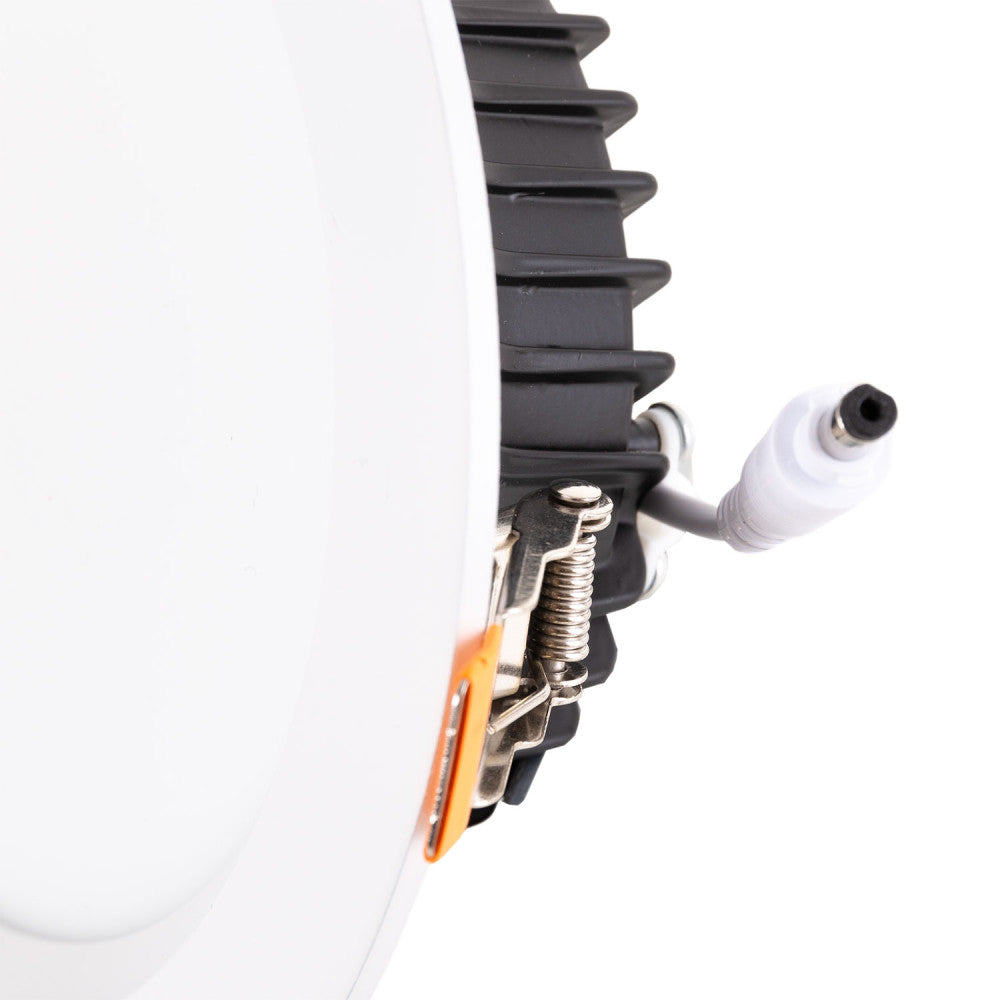 El Downlight de LEDs circular de 190 mm de diámetro, con 48 mm de espesor y 161 mm de corte, ofrece soluciones para interiores como exteriores. Puede ser instalado directamente a las tomas de corriente suministradas por la red eléctrica (85-265 VAC) con una frecuencia de servicio de 50/60 Hz Cuenta con una alta eficacia (90 LmW) consumiendo 24 W mediante LEDs logrando proporcionar un flujo luminoso de 2160 Lm distribuidos uniformemente por un difusor de plástico opalizado de donde se obtiene un índice de reproducción cromática de 80. Aporta una iluminación equivalente a una bombilla incandescente de 150 W, su consumo representa un valor de 24kWh1000h, reduciendo la cantidad de energía facturada y las emisiones de gases contaminantes a la atmósfera. Este downlight está alimentado con un driver incluido en el paquete que debe ser conectado directamente a la red, con un conector de salida compatible con la conexión de la placa (55-90 VDC, 300 mA), adicionalmente se incluyen los accesorios necesarios para la instalación de la placa.