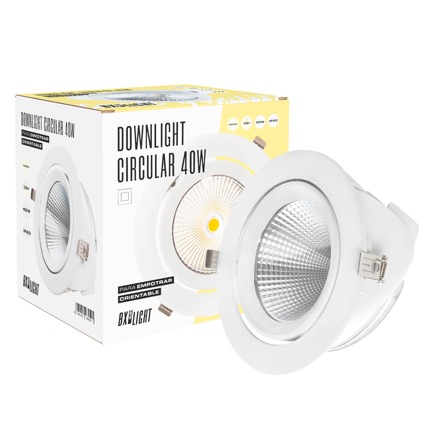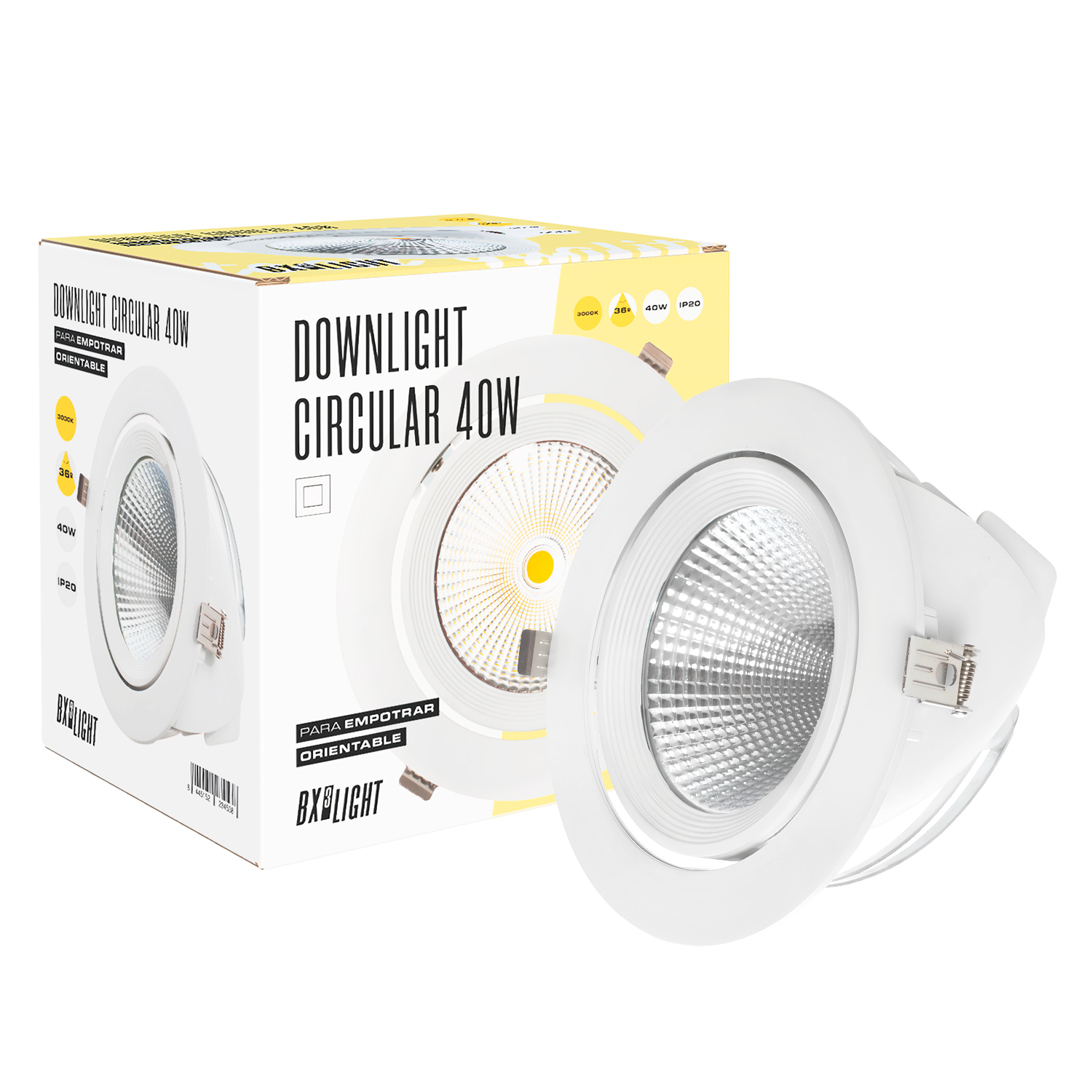 El Foco Downlight LED 40 W [BX3-40 W-G-CW] de BX3 Light es una luminaria empotrable orientable de alto rendimiento diseñada para proporcionar iluminación potente, eficiente y confortable en espacios interiores profesionales y públicos. Con una óptica con índice de deslumbramiento UGR < 17, esta unidad ofrece una iluminación de alta calidad sin deslumbramientos molestos, ideal para aplicaciones que requieren confort visual prolongado. Características técnicas Potencia nominal: 40 W Flujo luminoso: 4.000 Lm Temperatura de color: 6.000 ºK (blanco frío) Dirección de luz: Orientable, permite ajustar el haz según necesidades del espacio Índice de deslumbramiento: UGR < 17 (óptica antideslumbrante) Vida útil estimada: 50.000 h Eficiencia lumínica: Alta eficiencia energética con excelente rendimiento lumínico Instalación: Empotrable en techo con sistema de fijación sencillo y fiable Acabado: Perfil robusto con diseño moderno y discreto Ventajas del diseño UGR < 17: óptica diseñada para reducir el deslumbramiento y mejorar el confort visual en espacios de trabajo intensivo. Orientable: ajuste del ángulo de emisión para dirigir la luz donde más se necesite sin herramientas adicionales.