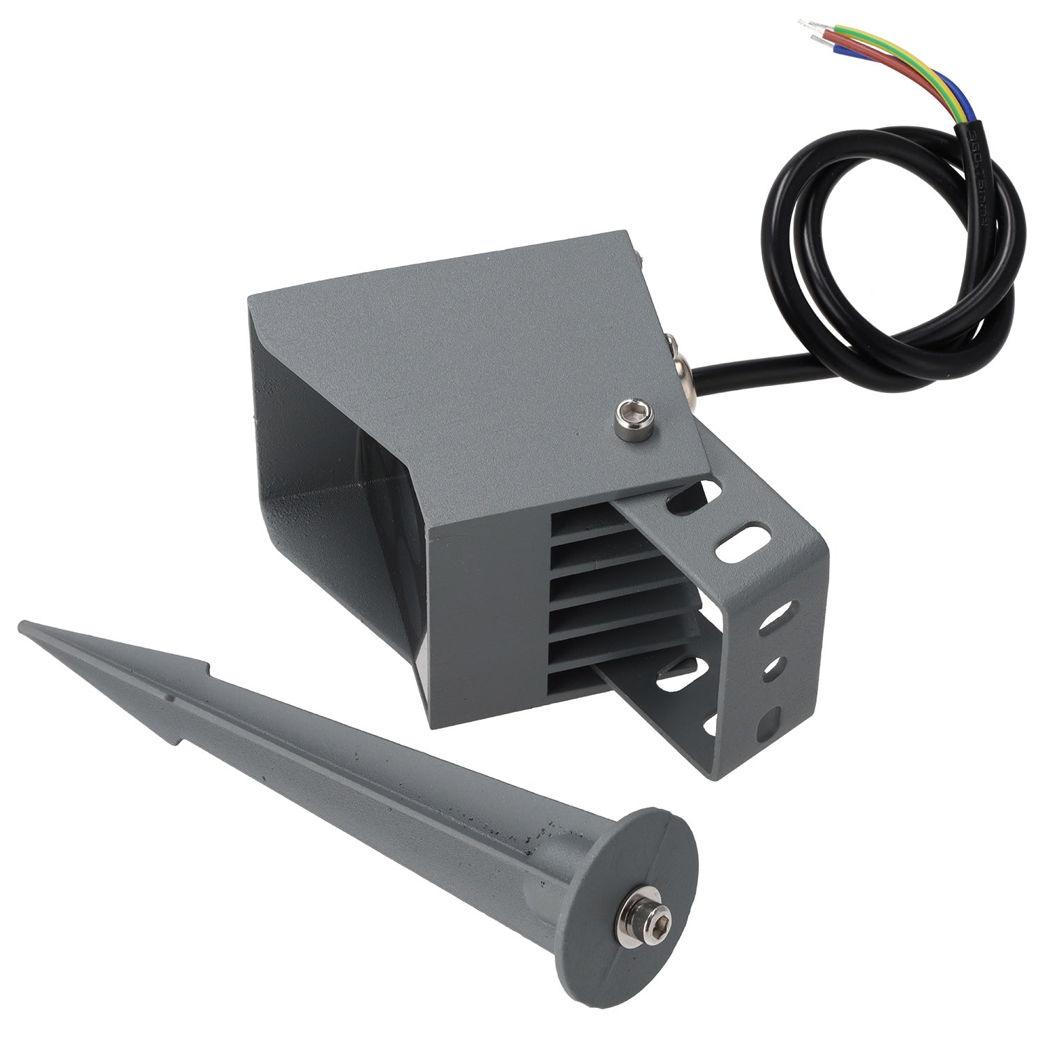 Foco LED de exterior con pincho diseñado para la iluminación decorativa y funcional de jardines, zonas verdes, senderos y elementos arquitectónicos. Su sistema de instalación mediante pincho permite una colocación rápida y sencilla directamente en el suelo, facilitando la orientación del foco para dirigir la luz hacia puntos concretos del jardín. Fabricado con materiales resistentes para uso en exteriores, cuenta con un grado de protección IP65 que garantiza protección frente al polvo y chorros de agua, asegurando un funcionamiento fiable en condiciones climatológicas adversas.
