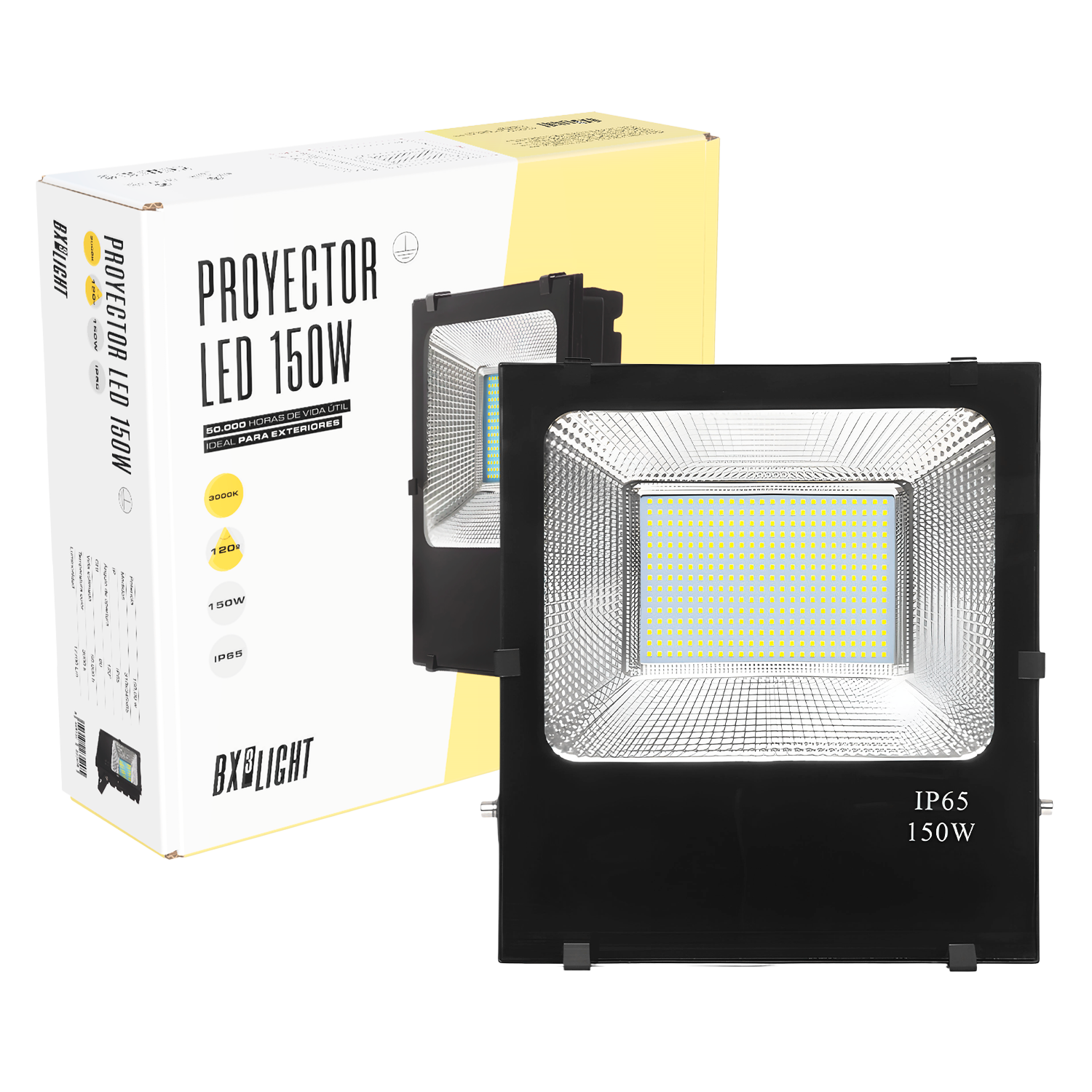 El Foco Proyector LED 150 W BX3 LIGHT es una luminaria de alto rendimiento diseñada para iluminación exterior profesional, ofreciendo gran potencia lumínica, eficiencia energética y resistencia en entornos exigentes. Especificaciones técnicas: Potencia nominal: 150 W Flujo luminoso: 18.000 lúmenes Grado de protección: IP65 (resistente al polvo y chorros de agua) Vida útil estimada: 50.000 horas Tecnología LED: Alta eficiencia Encendido instantáneo Cuerpo: Aluminio inyectado con alta disipación térmica Características principales: Iluminación potente y uniforme para grandes superficies Alta resistencia a condiciones climáticas adversas Bajo consumo energético Soporte orientable para ajuste preciso del haz de luz Ideal para naves industriales, parkings, fachadas, zonas deportivas y exteriores comerciales Fabricado bajo los estándares de calidad de BX3 LIGHT, garantiza estabilidad lumínica, larga durabilidad y fiabilidad en aplicaciones de iluminación exterior profesional.