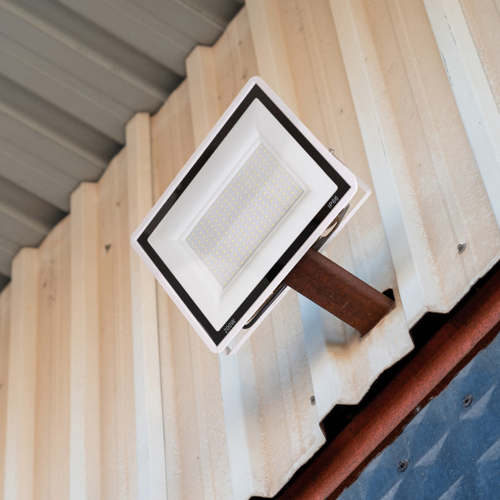 El Foco Proyector LED IP65 acabado en color Blanco destaca por su diseño compacto y su acabado minimalista. Con un factor de potencia sobresaliente superior a 0.95, este proyector no solo garantiza un ahorro significativo en tu factura de luz, sino que también te ofrece una iluminación de alta calidad, reduciendo el consumo energético. Monta un difusor prismático especial que reduce notablemente las molestias ocasionadas por el deslumbramiento, que hace que de este foco el producto ideal para instalarlo en todo tipo de espacios, además su factor de protección IP65 junto a su carcasa fabricada en aluminio lo convierten en un foco perfecto para exterior, ya sea instalado en terrazas o balcones, o en donde queramos conseguir una iluminación de calidad con un consumo mínimo. Además, su bastidor permite inclinar la luminaria en la dirección deseada.