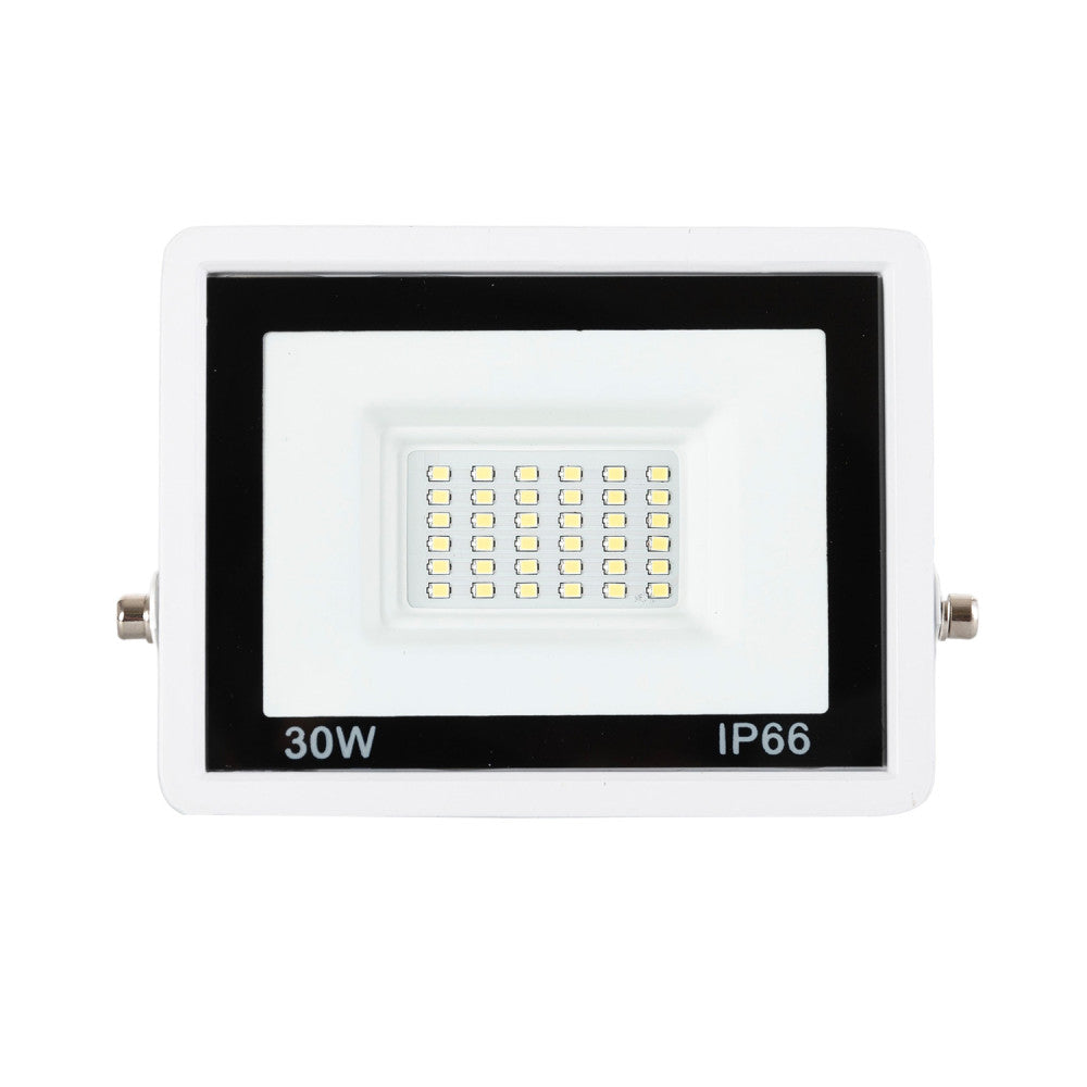 El Foco Proyector LED IP65 acabado en color Blanco destaca por su diseño compacto y su acabado minimalista. Con un factor de potencia sobresaliente superior a 0.95, este proyector no solo garantiza un ahorro significativo en tu factura de luz, sino que también te ofrece una iluminación de alta calidad, reduciendo el consumo energético. Monta un difusor prismático especial que reduce notablemente las molestias ocasionadas por el deslumbramiento, que hace que de este foco el producto ideal para instalarlo en todo tipo de espacios, además su factor de protección IP65 junto a su carcasa fabricada en aluminio lo convierten en un foco perfecto para exterior, ya sea instalado en terrazas o balcones, o en donde queramos conseguir una iluminación de calidad con un consumo mínimo. Además, su bastidor permite inclinar la luminaria en la dirección deseada.