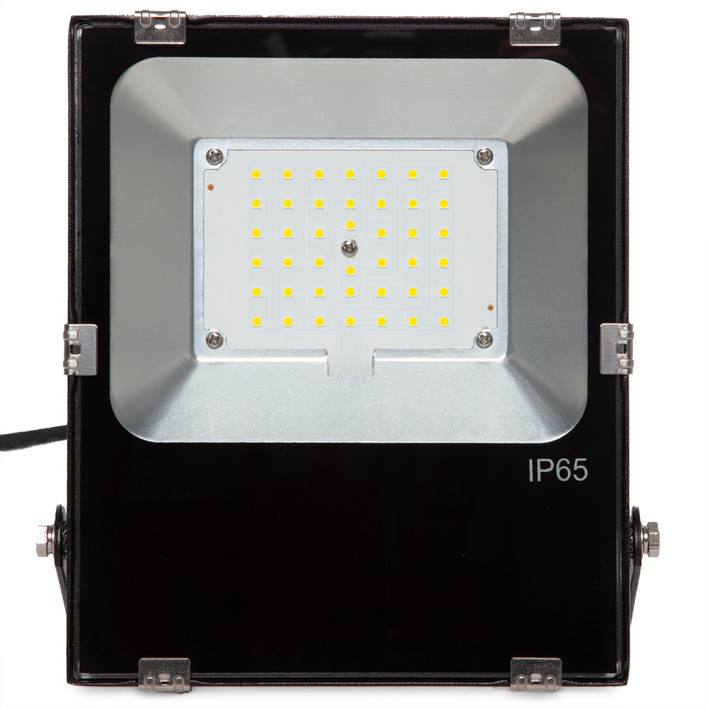 Proyector LED Slimline Lumileds LED 3030 30 W 3600 Lm IP65 50000 H integra potentes LEDs Luxeon 3030 2D, que tienen un rendimiento de 120 lm/W. La luz que emite es de alta calidad, como muestra su elevado CRI, y se distribuye en un ángulo de 120º de apertura. Su carcasa está fabricada en aluminio y mantiene al equipo en una temperatura óptima de trabajo. Destaca por su fuente de alimentación de estado sólido.