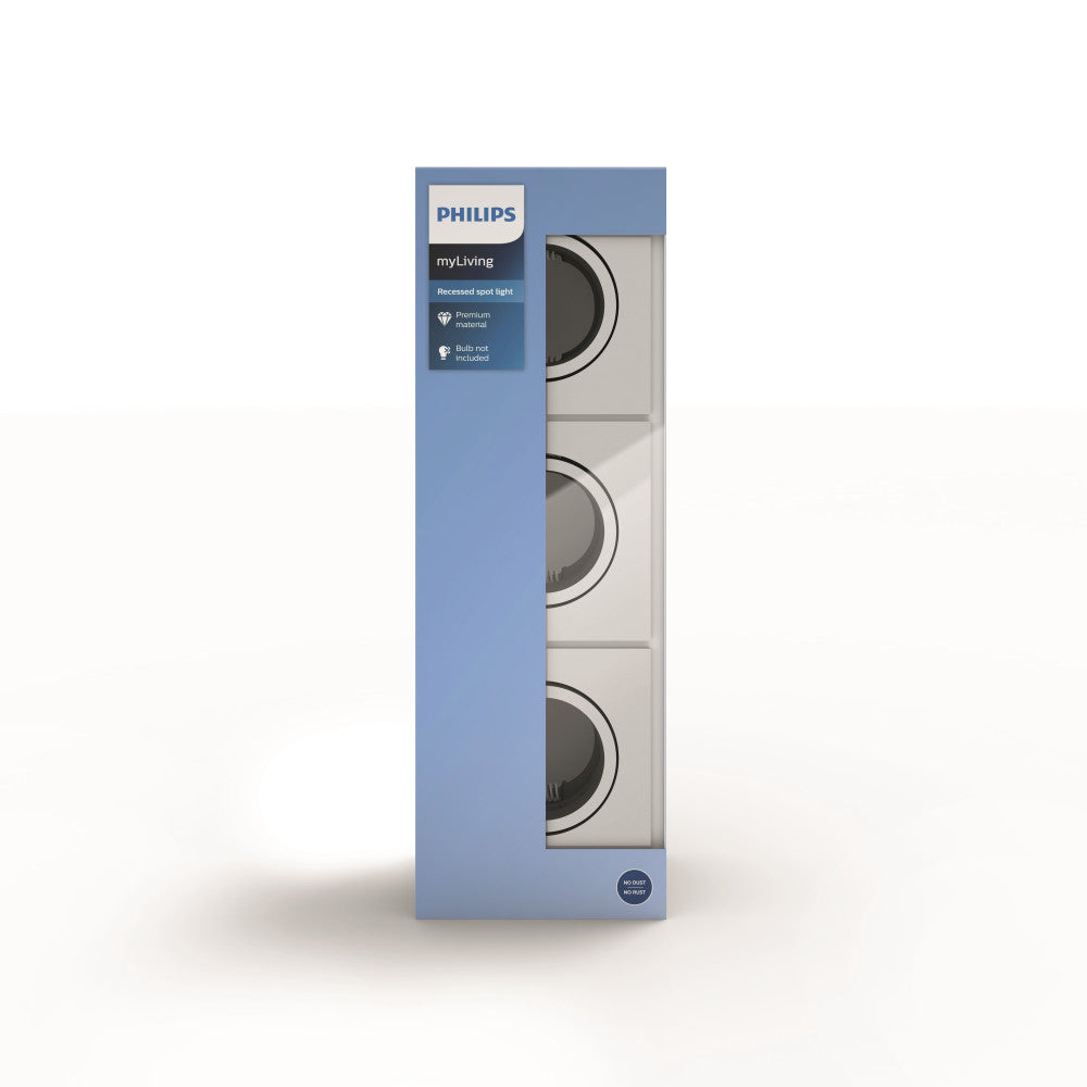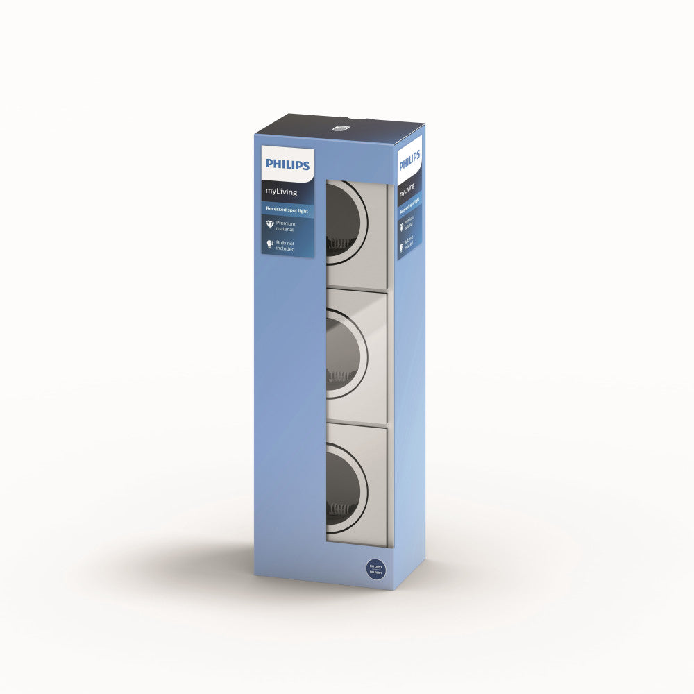 Juego de 3 Aros Empotrables Philips Donegal Cuadrado Cromado GU10