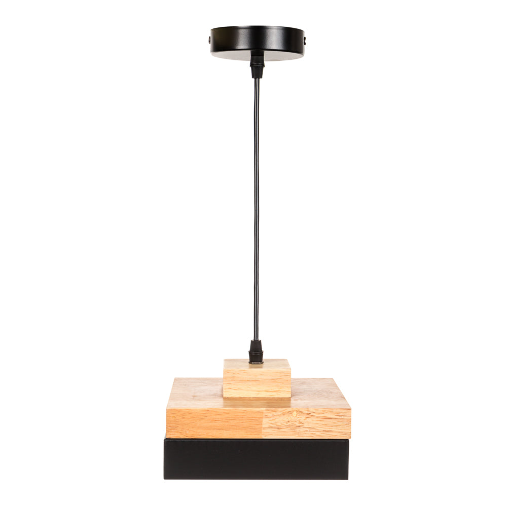 La lámpara colgante «Alicia» en negro o blanca tiene una terminación cuadrada con detalle en madera muy apropiada para cualquier habitación. Diseño sencillo y máxima eficiencia lumínica. La lámpara colgante “Alicia” funciona para la iluminación de salón, dormitorio, pasillo, cocina y comedor.