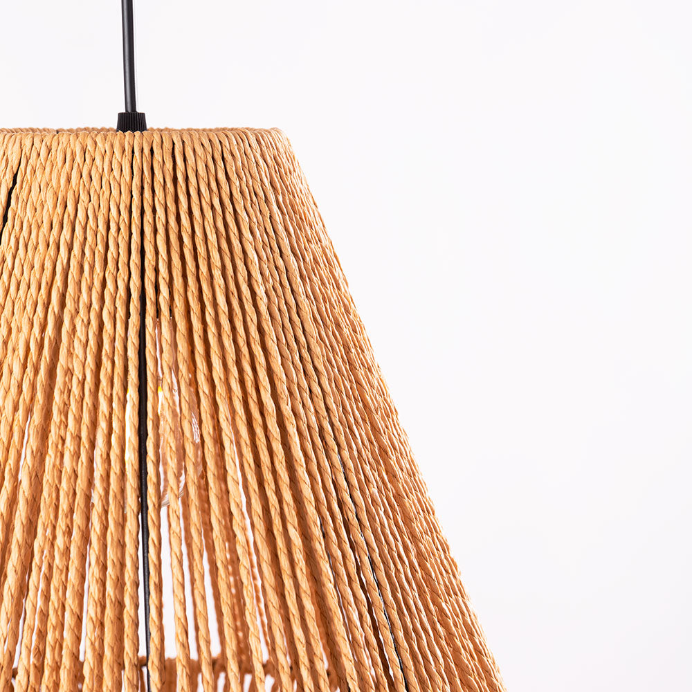 El diseño de la lámpara colgante “Allan” hecha en ratán natural proporciona una dispersión de luz muy mediterráneo y da un ambiente muy especial. Es ligera y compacta, una lámpara abierta por todos los lados, ya que las varillas de ratán están separadas y proporcionan un patrón de luz especial. La lámpara colgante “Allana” se puede ajustar fácilmente a la altura de la habitación y el portalámparas E27 está diseñado para una bombilla de bajo consumo que siempre priorice el ahorro de energía y la calidad lumínica.