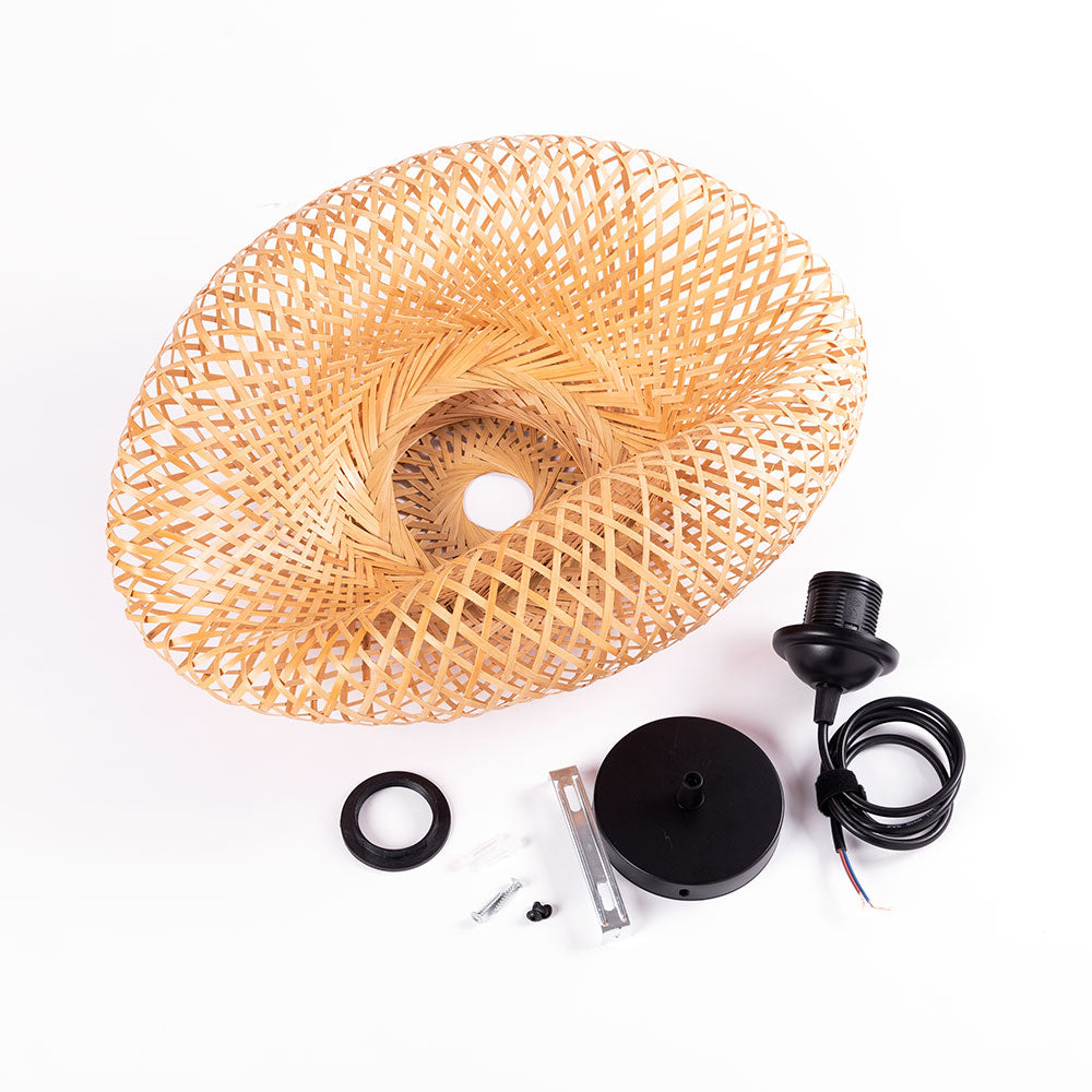 La lámpara colgante “Anthony” es una preciosa lámpara hecha con un entramado de tiras de ratán. Una opción original que no pasará desapercibida en decoraciones cálidas. Apuesta por un diseño vintage o clásico, Lámpara elegante y desenfadada, fabricada a mano con malla ovalada irregular de ratán.