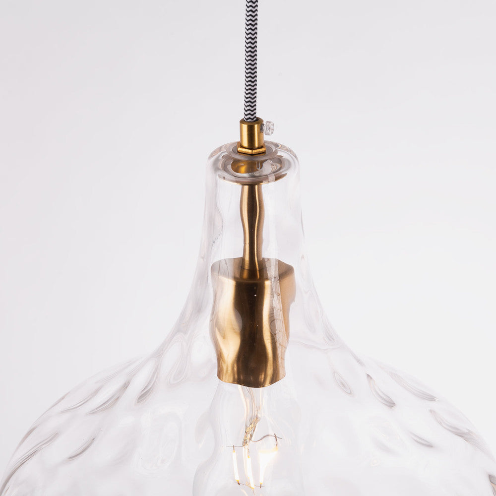 La Lámpara Colgante Cristal Atsugicho combina un diseño clásico y elegante con unos acabados de máxima calidad. Este tipo de lámparas trabajan la materia prima para dar ese toque de color que aportará personalidad a cualquier espacio convirtiéndolo en algo único. La Lámpara Colgante Cristal Atsugicho está fabricada en metal y cristal. Su pantalla hace que sea su principal característica de diseño, en la elaboración trabaja una forma esférica con sutiles relieves y un toque azulado que rememoran las lámparas clásicas de los años 20.