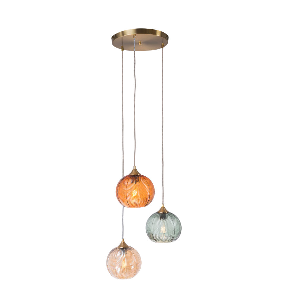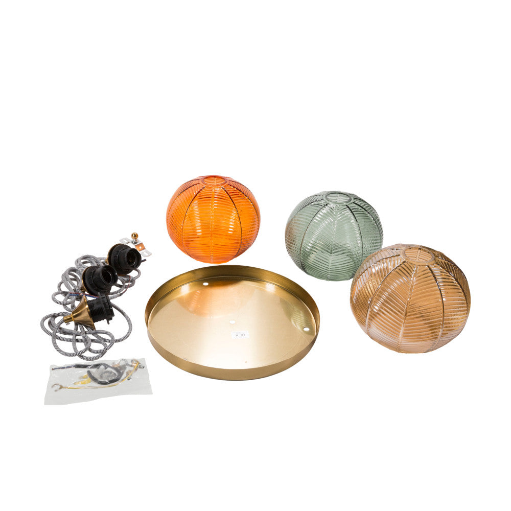 La Lámpara Colgante Cristal Guadalupe combina un diseño clásico y elegante con unos acabados de máxima calidad. Este tipo de lámparas trabajan la materia prima para dar ese toque de color y calidez que aportará personalidad a cualquier espacio convirtiéndolo en algo único. La Lámpara Colgante Cristal Guadalupe está fabricada por un florón metálico en acabado dorado y tres pantallas de cristal que cuelgan de tres cables textiles en blanco y negro. Sus pantallas hacen que sea su principal característica de diseño, en la elaboración trabaja una forma esférica con sutiles relieves y una combinación de colores vivos como el naranja, gris y beige que rememoran las lámparas clásicas de los años 20. La luz que emita la Lámpara Colgante Cristal Guadalupe dependerá de la bombilla E27 que elijamos, abriéndose así un amplio abanico de posibilidades a la hora de crear distintos ambientes. Podremos elegir entre una luz cálida, neutra o fría u optar por la elección de una bombilla con tecnología CCT, RGB o RBGW. Se utiliza ampliamente en entornos tan variados como comedores, dormitorios, cocinas, oficinas, salas de estar, restaurantes, cafeterías, etc. Utiliza 3 Bombillas E27 NO INCLUIDAS en el producto.