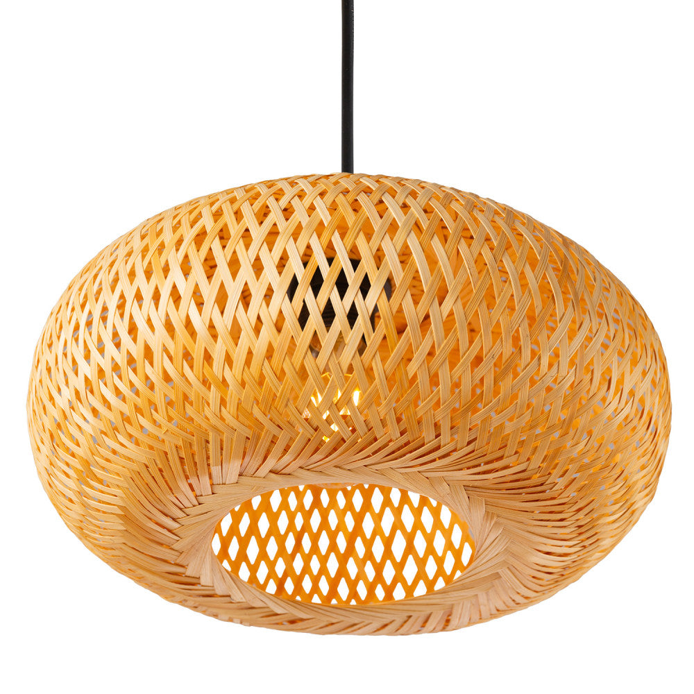 La lámpara colgante Shahin Shahr combina un estilo natural y boho-chic con acabados de primera calidad. Con su diseño nos permite dar un toque de calidez y personalidad al espacio deseado. Esta lámpara está fabricada en ratán, un material natural de aspecto muy similar al bambú, pero con mejores propiedades de resistencia y elasticidad.