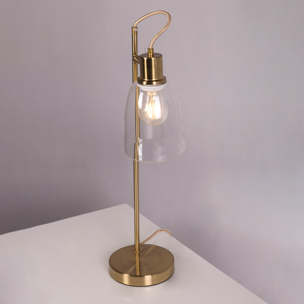 La Lámpara de Metal y Cristal Najafabad es el elemento de decoración perfecto para dar ese toque personal al espacio. Por su forma y materiales se integra a la perfección en estilos como el moderno, clásico o vintage. Esta lámpara está compuesta por una estructura de metal en acabado dorado y una tulipa de cristal transparente.
