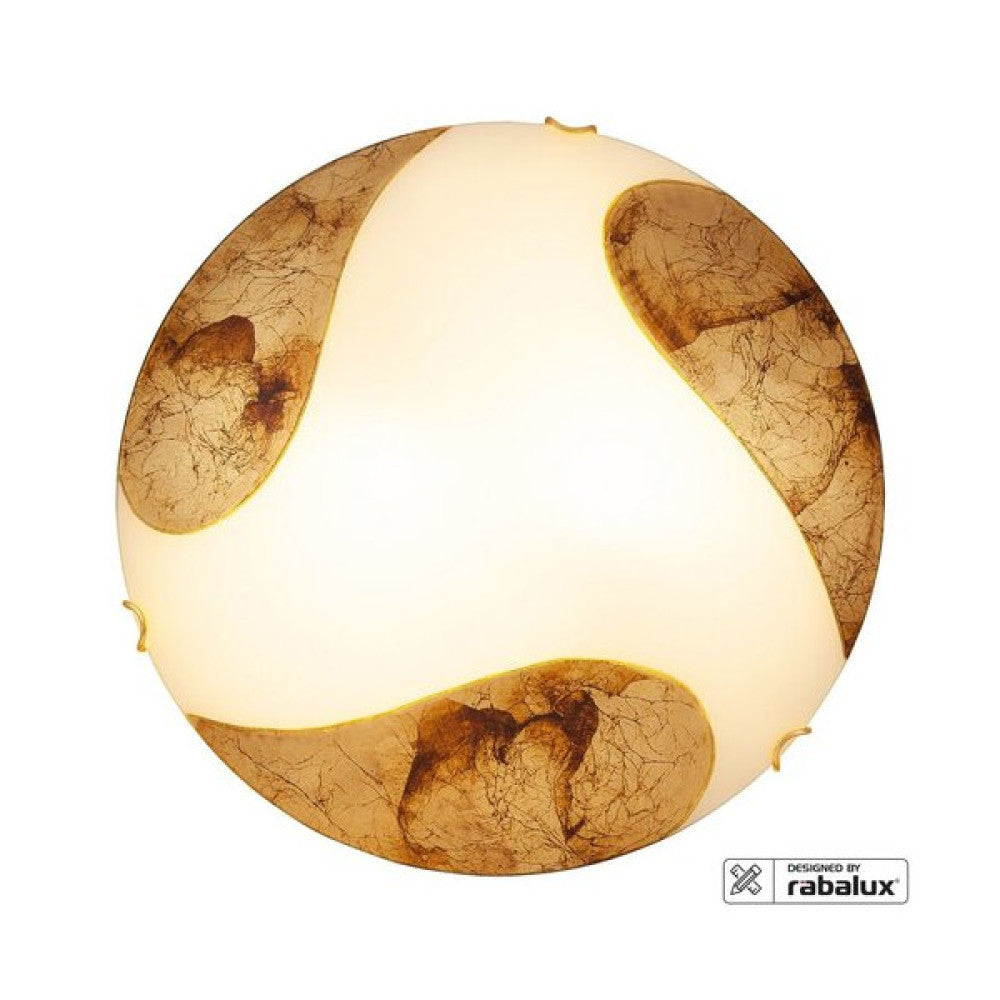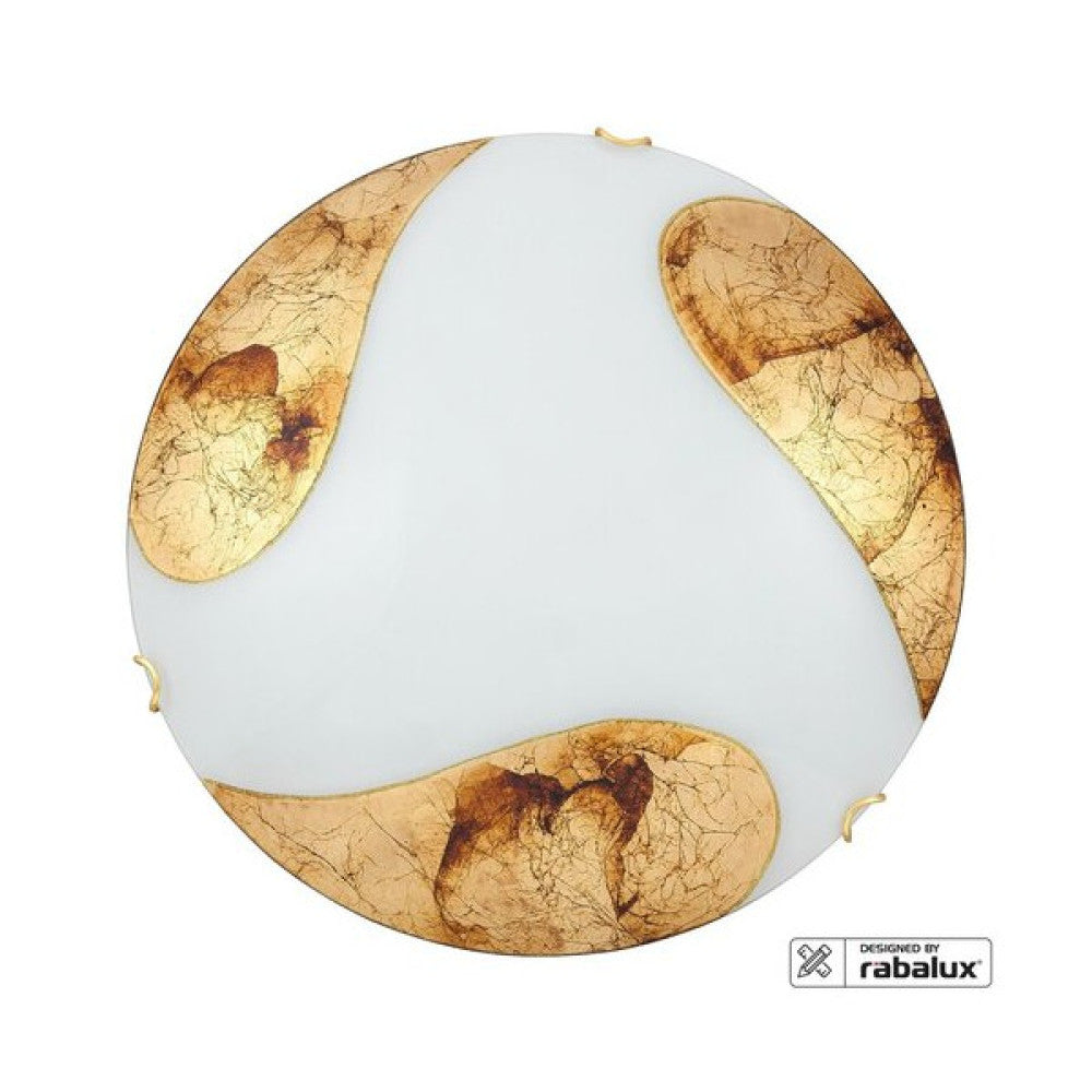 Lámpara de cristal de 40 cm de diámetro, pintada a mano, blanca y dorada, con luminaria de metal. La luminaria se puede utilizar también con 2 fuentes de luz de bajo consumo con una potencia de hasta 60 W cada una, tipo de casquillo E27.