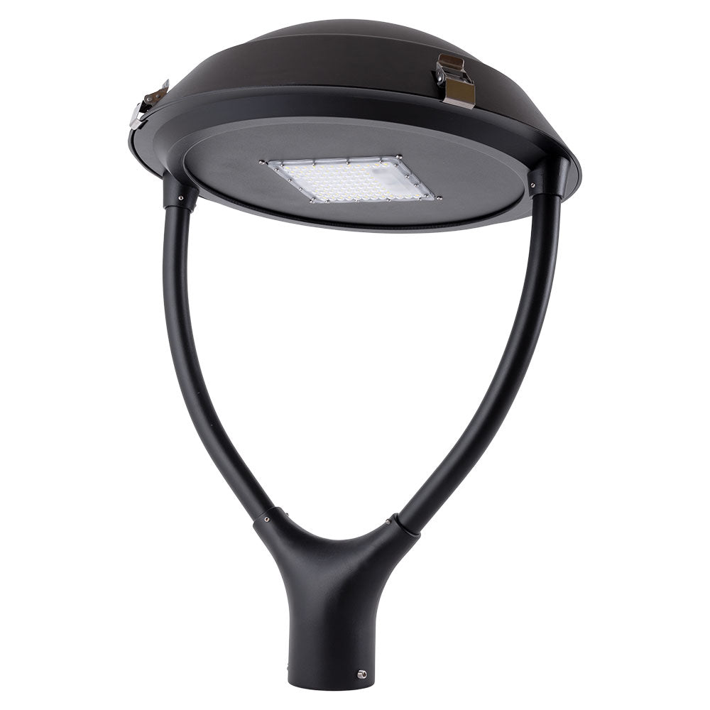 Dotada de las últimas tecnologías en iluminación, esta farola monta LEDs Bridgelux de alta potencia, los cuales proporcionan un elevado rendimiento lumínico. Monta fuente de alimentación Inventronics. Además, la luminaria cuenta con un protector de sobretensión. Diámetro fijación base: Ø70 mm