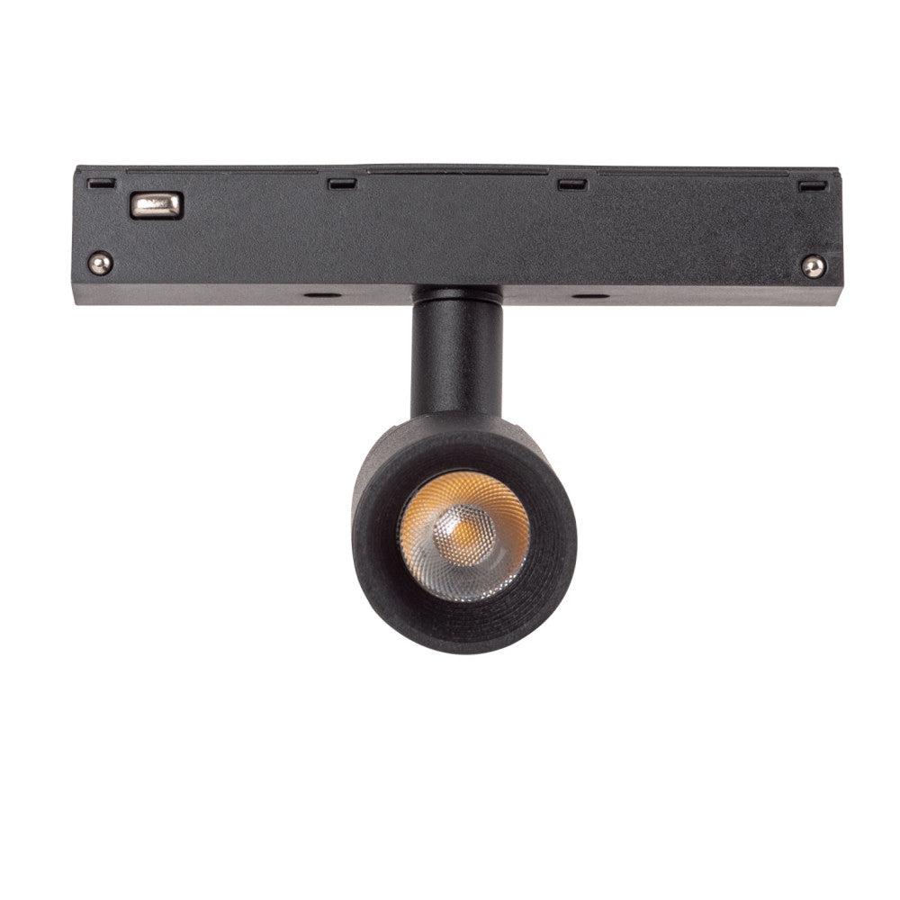 El Foco para Carril Magnético es orientable 360º ya que puedes dirigirlo donde quieras y se puede poner o quitar sin ningún tipo de instalación engorrosa, simplemente presionando las pestañas laterales del foco se imantará al carril. Para quitarlo, hay que volver a apretar las pestañas laterales y tirar de él y sin esfuerzo podremos quitar el foco o colocarlo en otro punto del carril. Esto facilita enormemente el trabajo con la iluminación, ya que los focos se pueden instalar y desplazar a lo largo del carril sin necesidad de herramientas específicas