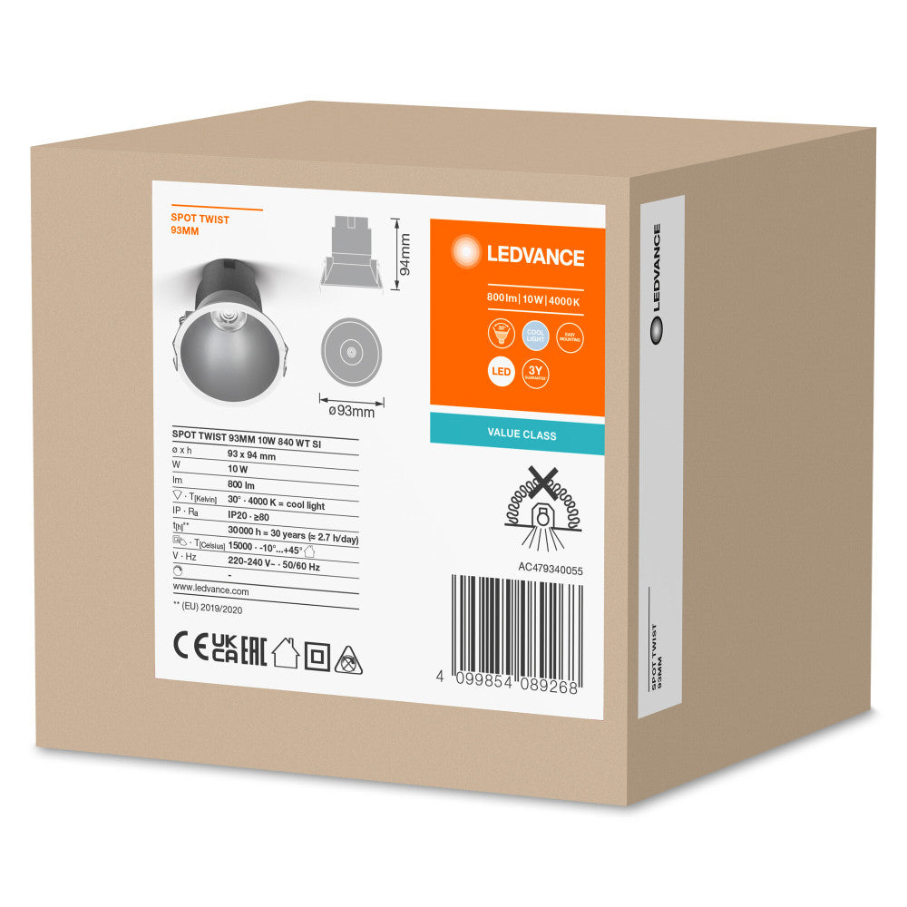 Foco empotrable con LED integrado. Características del producto: Muelles protegidos con almohadilla de silicio. Beneficios del producto: Ahorro energético de hasta 90 % en comparación con los focos spot halógenos. Fácil instalación y conexión eléctrica gracias a los conectores eléctricos sin herramientas.