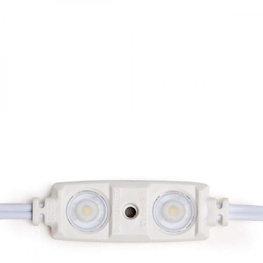 El módulo de LEDs SAMSUNG ofrece soluciones para arreglos con módulos de LEDs versátiles en ambientes interiores para uso industrial, comercial y residencial. Puede ser instalado directamente a 12 voltios en corriente continua. Cuenta con una alta eficacia (58 LmW) consumiendo 1,2 W mediante 2 LEDs del tipo SMD5630 y logrando proporcionar un flujo luminoso de 70 Lm distribuidos uniformemente por una óptica transparente de donde se obtiene un índice de reproducción cromática de 80. Su consumo representa un valor de 1,2kWh1000h, reduciendo la cantidad de energía facturada y las emisiones de gases contaminantes a la atmósfera.