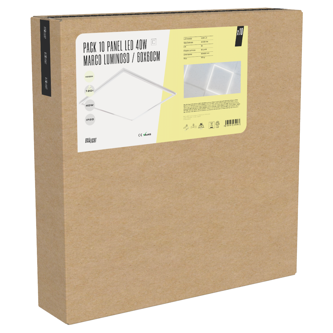 El Pack 10 Paneles LED 40 W 60×60 Marco Luminoso BX3 LIGHT es una solución profesional de alto rendimiento diseñada para proporcionar iluminación homogénea y elegante en entornos comerciales y técnicos. El diseño marco luminoso garantiza una distribución uniforme de la luz, mayor eficiencia y mejor disipación térmica. Especificaciones técnicas (por panel): Potencia nominal: 40 W Flujo luminoso: 3.600 lúmenes Formato: 60×60 cm Tecnología: Marco luminoso (Backlight) Instalación: Empotrable en techo desmontable 600×600 Encendido instantáneo sin parpadeos Larga vida útil operativa Características principales: Iluminación uniforme sin zonas oscuras Alta eficiencia energética Sustitución directa de luminarias fluorescentes tradicionales Diseño moderno y profesional Pack ideal para instalaciones de volumen Perfecto para oficinas, centros educativos, clínicas y espacios comerciales Fabricados bajo los estándares de calidad de BX3 LIGHT, garantizan estabilidad lumínica, eficiencia energética y reducción de costes de mantenimiento en proyectos de iluminación profesional.