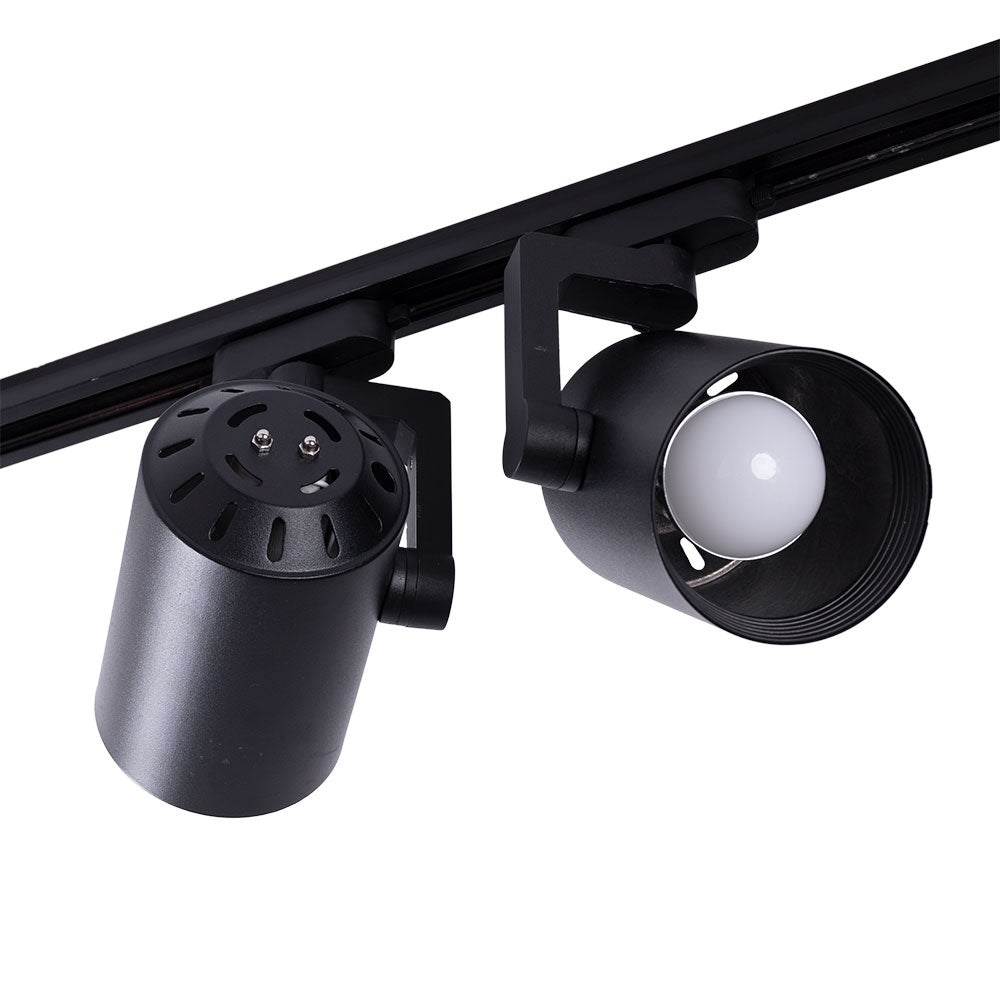 El Pack 2 Foco de Carril Monofásico E27 PAR30/A65 es la solución perfecta para destacar un elemento concreto en el espacio. El Portalámparas de Carril Monofásico para Bombilla E27 es totalmente orientable, lo que permite que la luz del foco pueda ser dirigida en cualquier dirección. Esto hace posible modificar la iluminación del espacio en función de los elementos que lo componen.