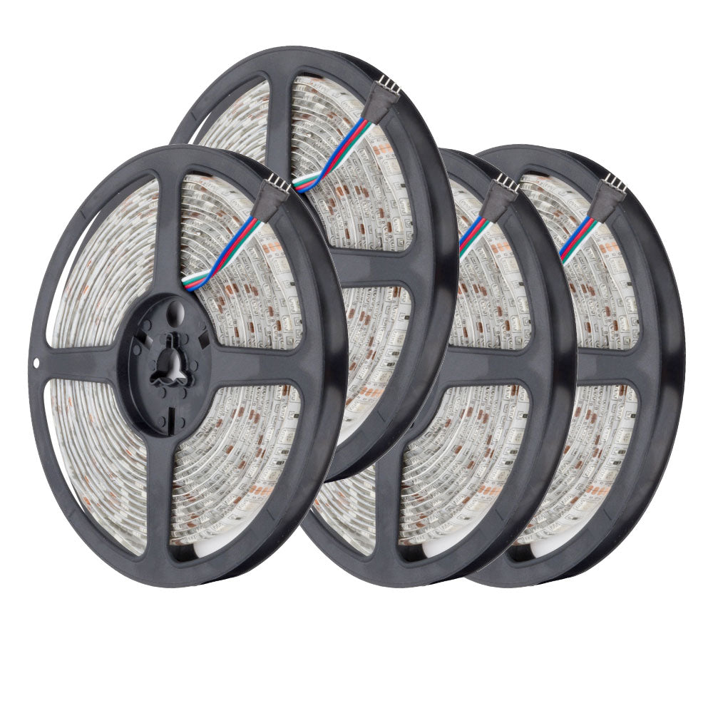 Uno de color Rojo, otro de color Verde y otro de color Azul. con un controlador RGB, se puede encender la tira y hacer que emita luz con combinaciones y efectos de colores diferentes, en función de los programas del controlador. Las tiras flexibles SMD 5050 son de alta potencia y brillo. Son tiras de tiple núcleo (por las tres diferentes áreas que se pueden identificar al mirar de cerca el LED).