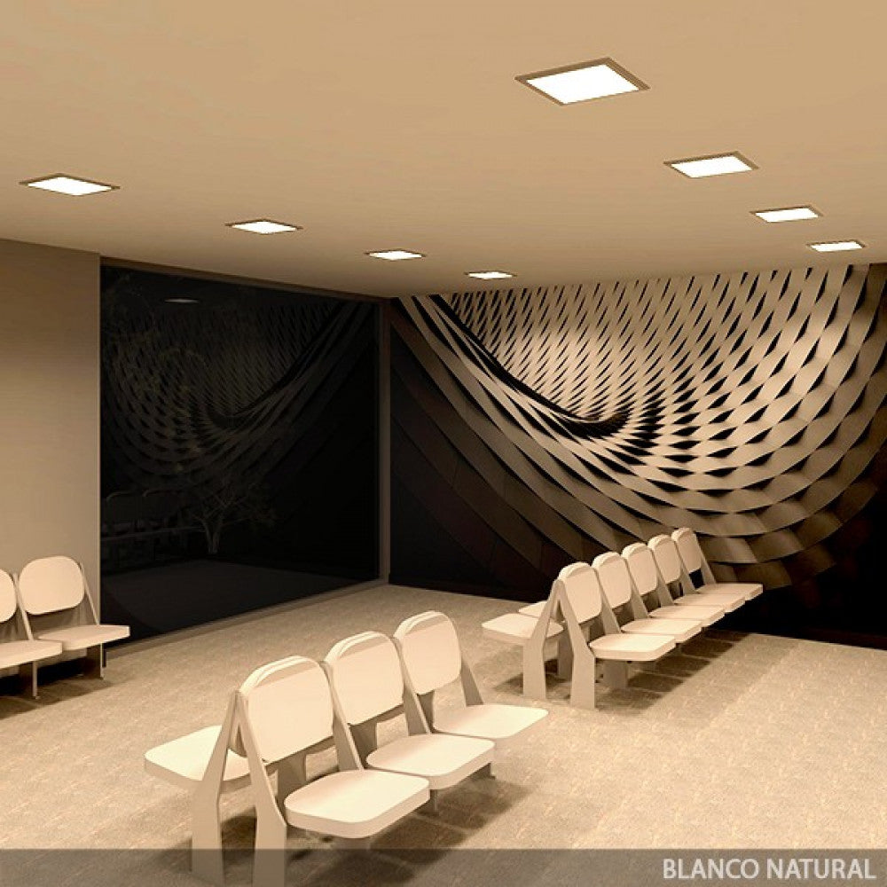 El panel de LEDs cuadrado de 300x300mm, cuenta con un acabado elegante, marco de aluminio lacado en plata y un diseño ultra-fino de tan solo 12 mm. Con un arranque inmediato, sin ruidos y sin parpadeos, este Panel LED es perfecto para lugares en donde se quiere maximizar el espacio iluminado, proyectando la luz de manera uniforme y sin deslumbramiento. Ofrece soluciones para oficinas, fábricas, supermercados, tiendas y para uso residencial por su diseño y acabado elegante representa una alternativa eficiente para los diseñadores más exigentes. Puede ser instalado directamente a las tomas de corriente suministradas por la red eléctrica (85-265 VAC) con una frecuencia de servicio de 50/60 Hz Cuenta con una alta eficacia (83 LmW) consumiendo 12 W mediante 102 LEDs del tipo SMD3014 y logrando proporcionar un flujo luminoso de 1000 Lm distribuidos uniformemente por un difusor de plástico opalizado de donde se obtiene un índice de reproducción cromática de 80.